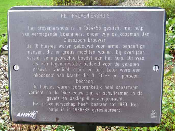 Diese Häuser haben ihren Urspung in den Jahren 1554/55, als von wohlhabenden Einwohnern Edams diese Behausungen für die Ärmsten der Stadt gebaut wurden. So jedenfalls verstehe ich die erläuternde Tafel dazu: