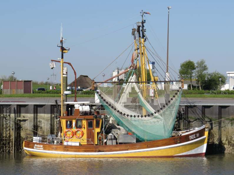 Neben der Fähre gibt es auch ein paar Krabbenkutter im Hafen.