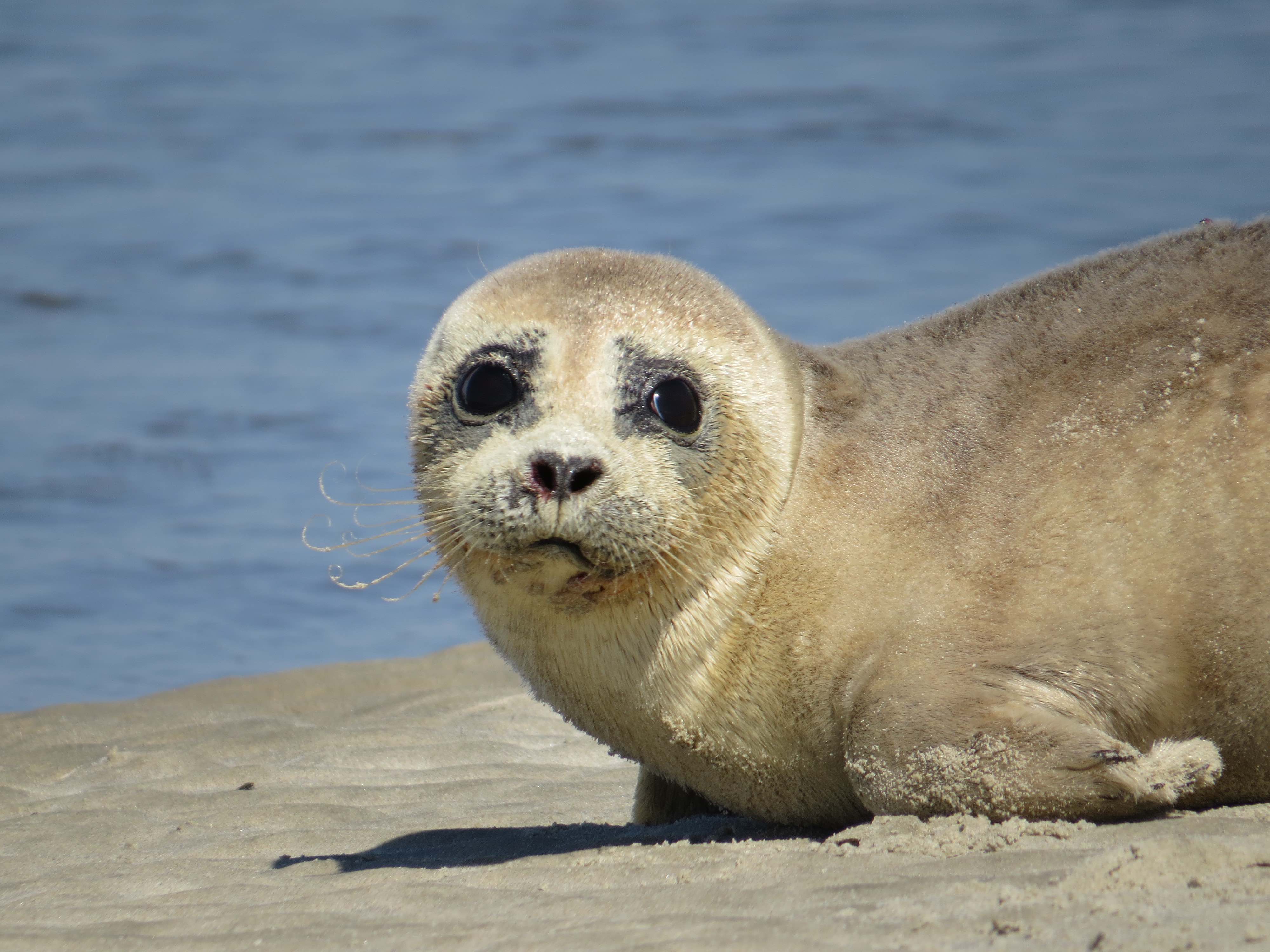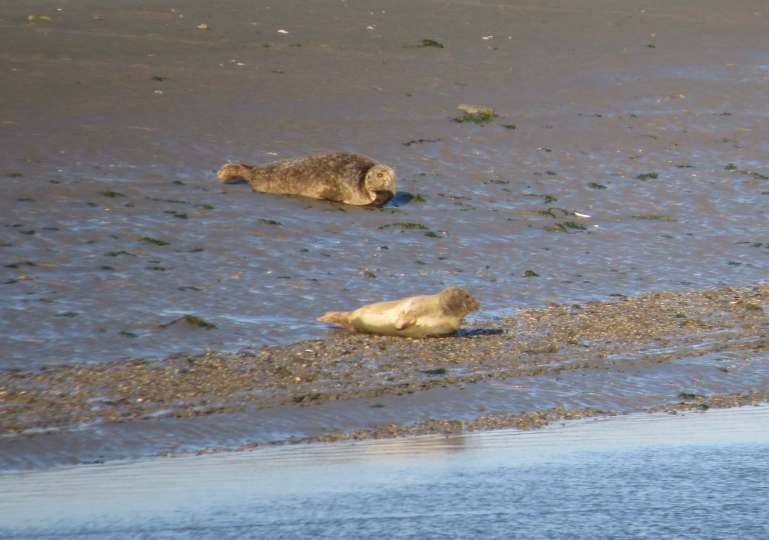 Manchmal kommt man auch an Seehunden vorbei, die sich auf dem trockengefallenen Watt sonnen.