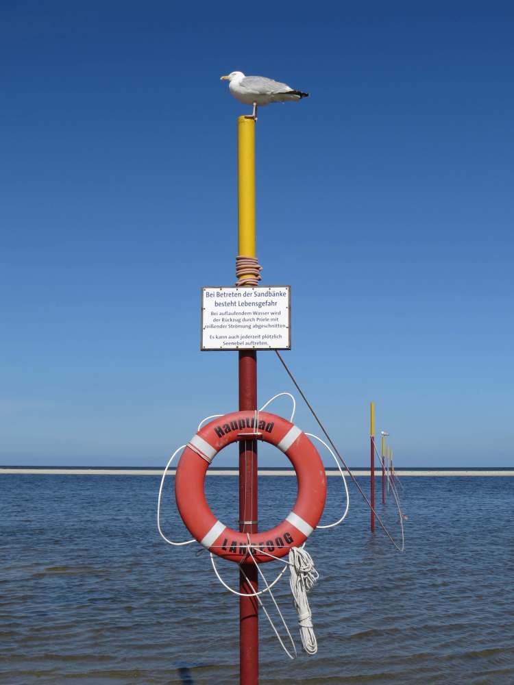 Baden kann man auch hier gut, auch ohne DLRG, wenn man nicht zu weit rausschwimmt. Durch die vorgelagerten Sandstreifen wird es schnell wieder flacher, wodurch es auch weniger gefährlich ist.