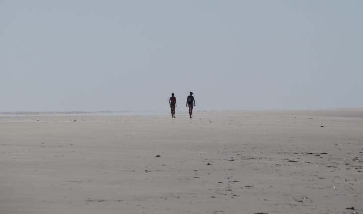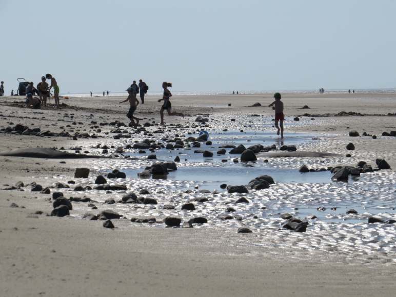 An weiten Teilen dieses Strandes liegen kilometerlange, erhöhte Strandstreifen durch eine Vertiefung getrennt wie nahegelegene Sandbänke vor dem eigentlichen Strand. Je nach Wasserstand werden sie dann auch zu Sandbänken. Das scheint die Menschen magisch anzuziehen.