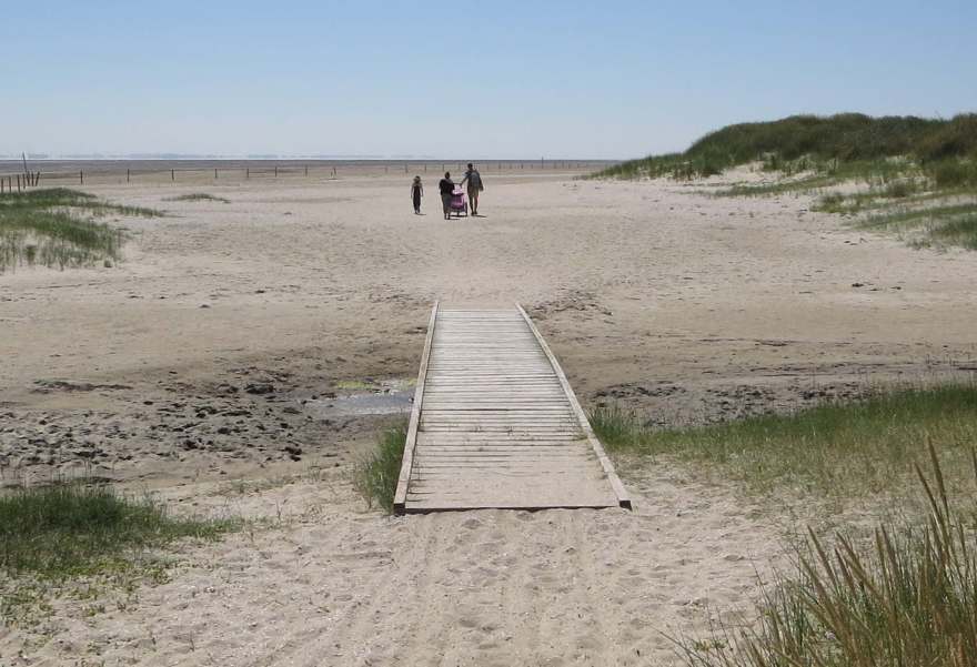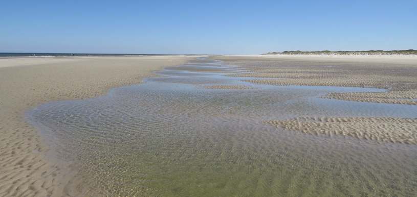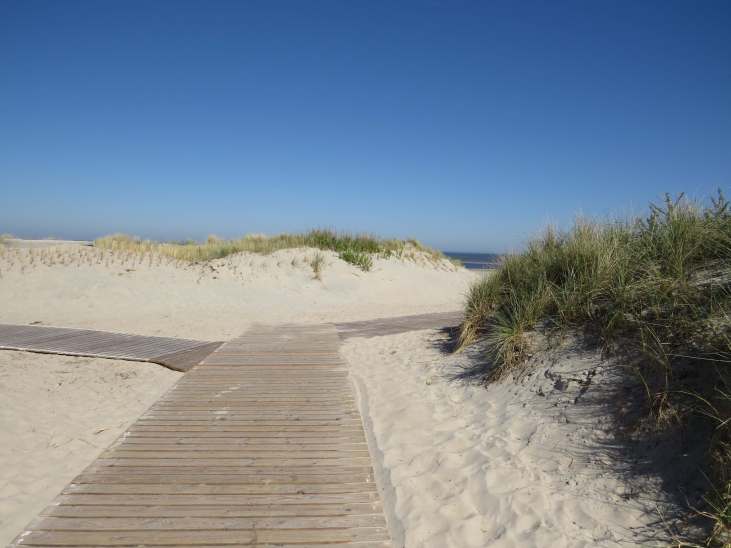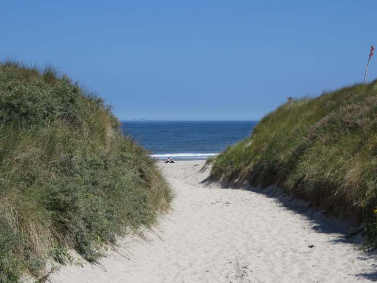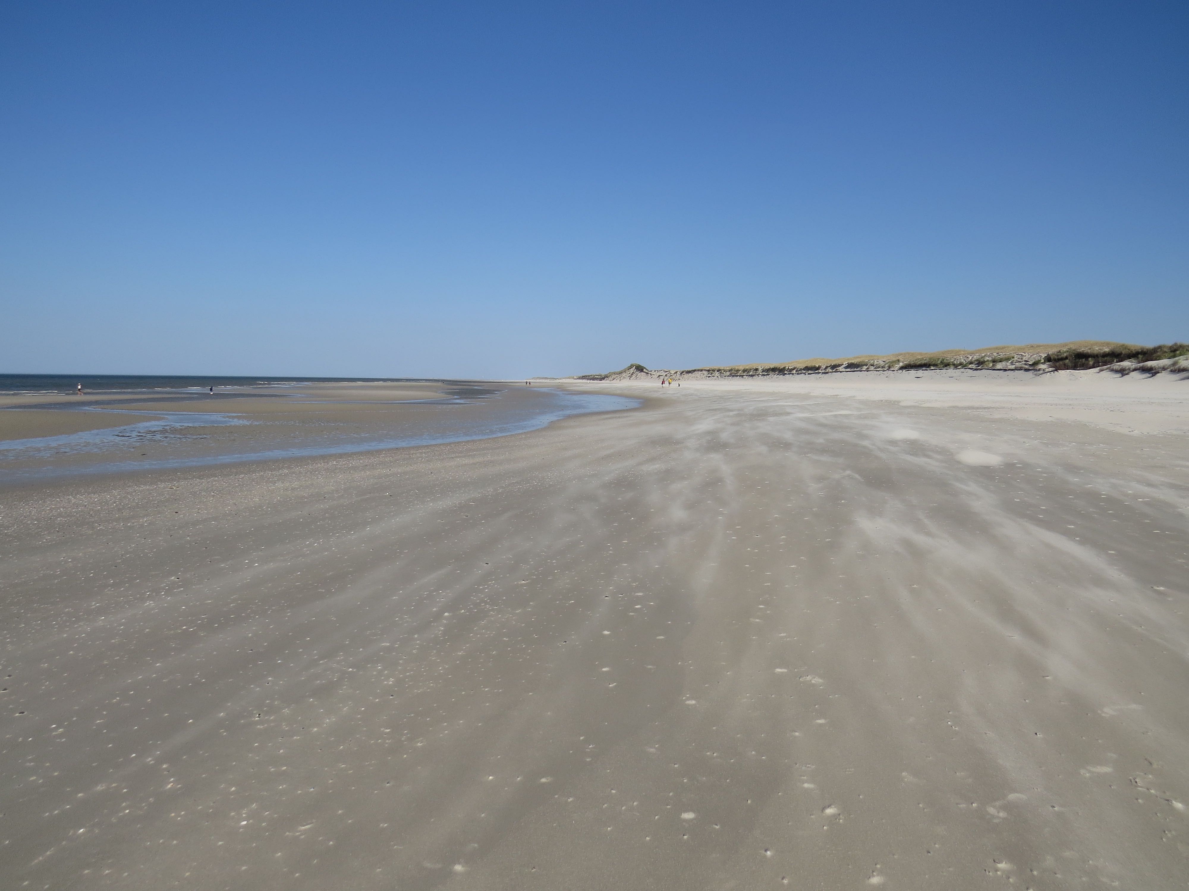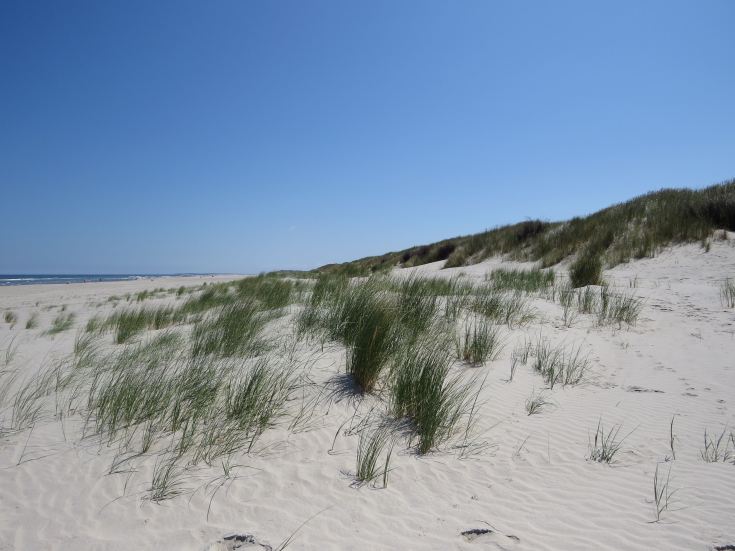 Hier ändert sich auch das Strandbild etwas. Teilweise ist der Strand sehr breit. Außerdem laufen die Dünen eher flacher zum Strand hin aus.