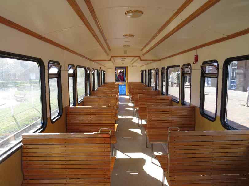 Die Waggons sind innen noch klassisch mit Holz gestaltet, jedenfalls die Sitzbänke.