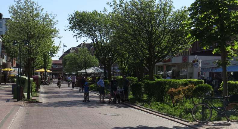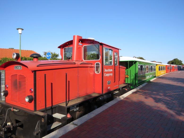 Im Ort auf Langeoog gibt es nur zwei nennenswerte Straßen, die Hauptstraße (hier mit dem Bahnhof im Hintergrund)