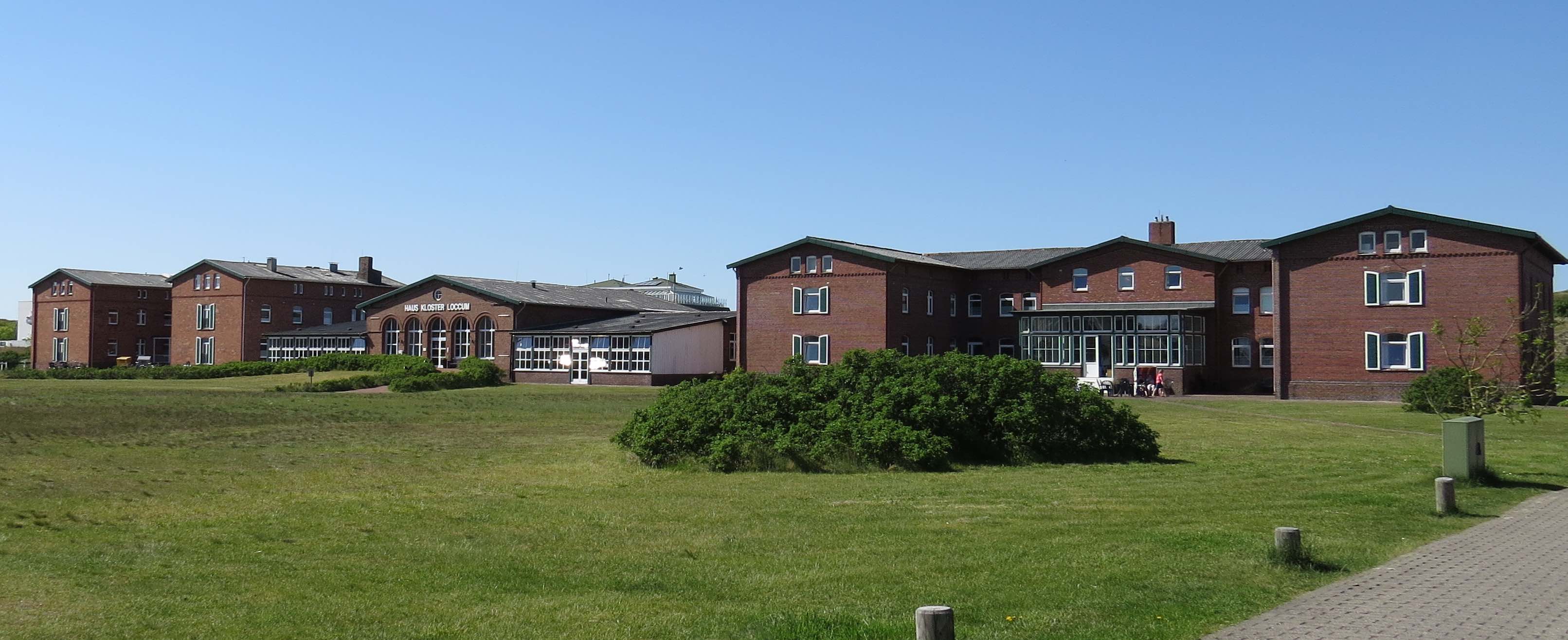 Die Barkhausenstraße führt Richtung Haus Kloster Loccum, eine evangelische Einrichtung, die besonders (benachteiligten) Familien einen Urlaub auf Langeoog ermöglichen will. Das Gebäude fällt durch seine Größe und etwas kasernenähnliche Klinkerbauweise auf. Auch die riesige Freifläche vorm Haus ist bemerkenswert. Ich kann mich nicht daran erinnern, dass die in den letzten 50 Jahren jemals für irgend etwas genutzt wurde, aber vielleicht habe ich das auch nur nicht mitbekommen.