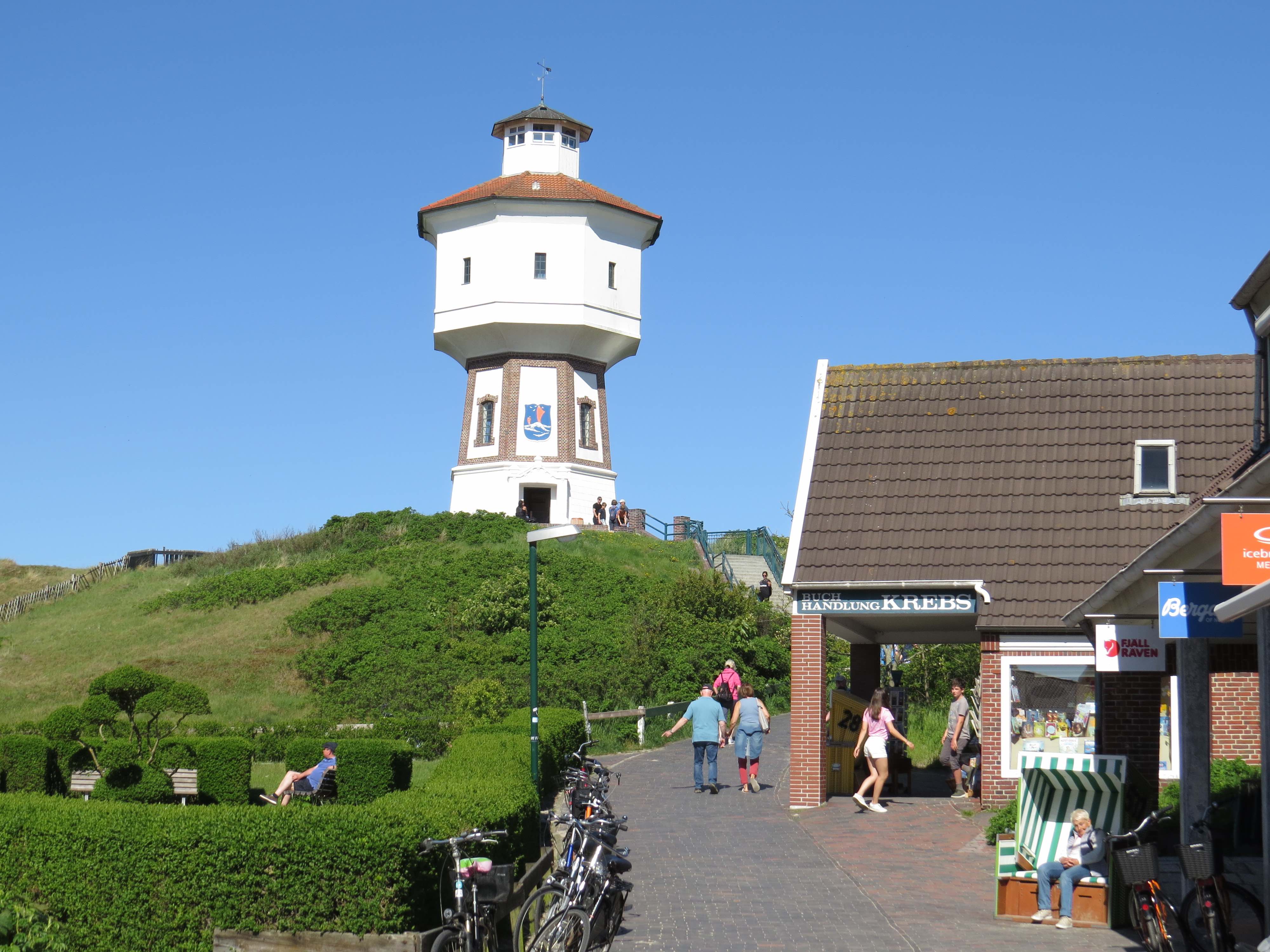 Geht man die Hauptstraße zu Ende, so gelangt man zum Wasserturm, der auch besichtigt werden kann (s. Langeoog.de). Dem ursprünglichen Zweck, den Wasserdruck in den Versorgungsleitungen über ein hoch gelegenes Wasserreservoir zu gewährleisten, dient er allerdings nicht mehr.