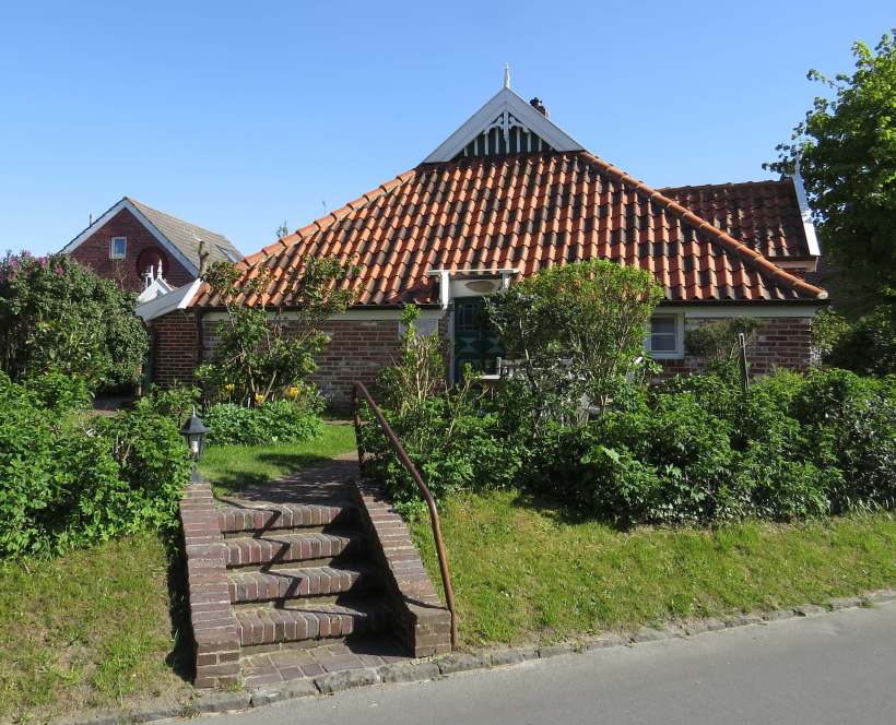 das Ferienhaus von Lale Andersen. Der Sonnenhof liegt gleich neben dem Inselfriedhof, am Nordrand des Ortes. Reetgedeckte Häuser sind auf Langeoog allerdings nicht typisch. Als weiteres reetgedecktes Haus auf Langeoog fällt mir nur die Teestube am Hafen ein.