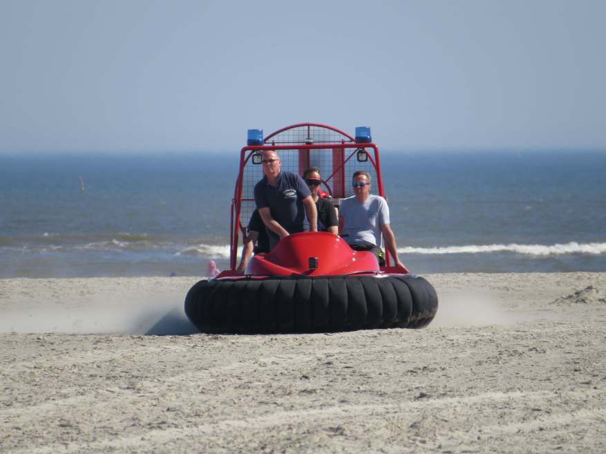 Auch für diesen Fall, der regelmäßig aufzutreten scheint, hat die Feuerwehr auf Langeoog nun, seit Januar 2018, ein Luftkissenboot. Hier machen sie wohl eine Testfahrt am Strand: