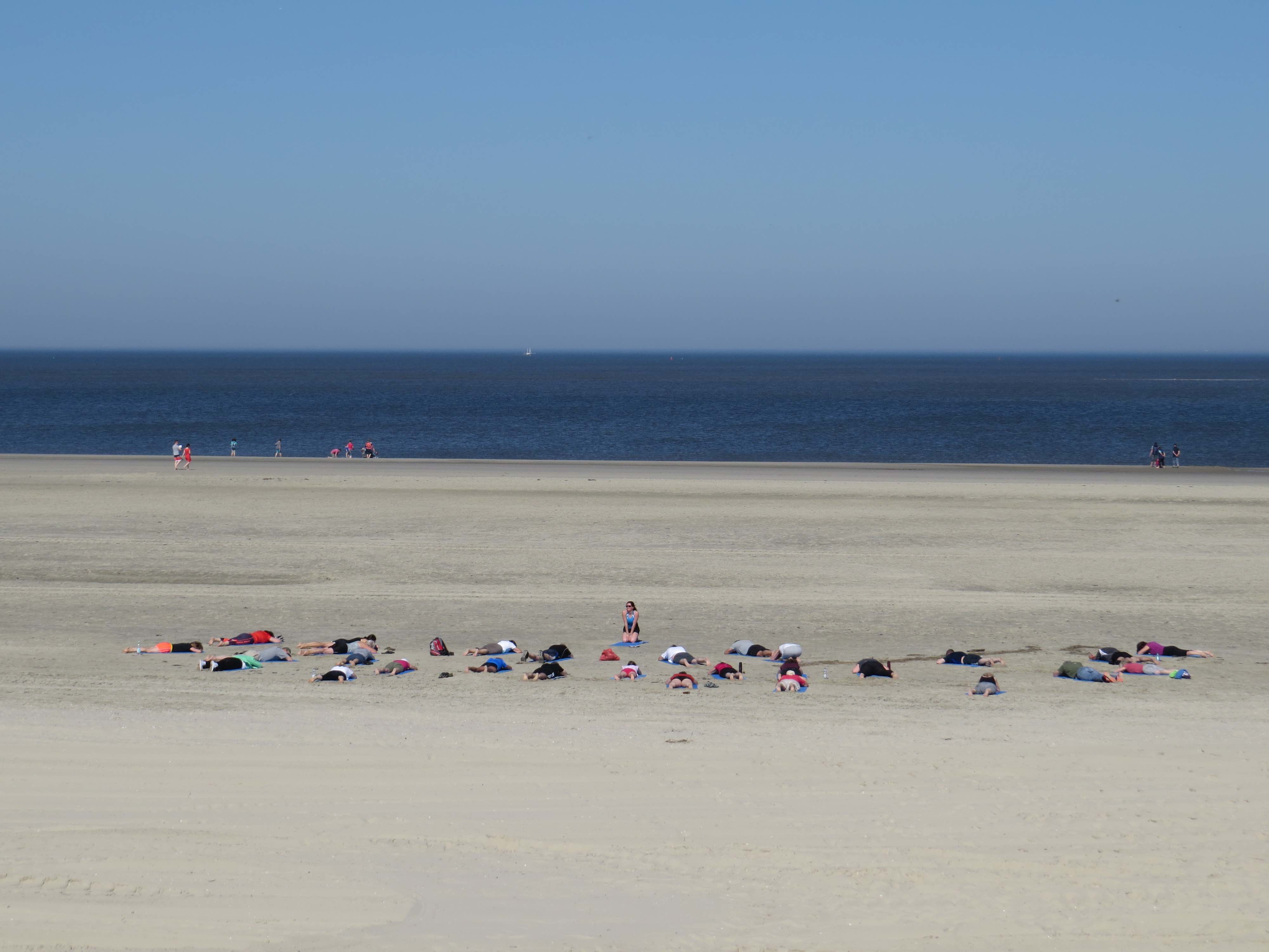 Viele entspannen sich am Hauptstrand aber nicht mit Yoga, sondern in einem Strandkorb.