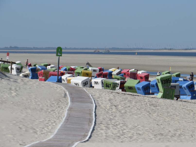 Der Hauptstrand verläuft im Grunde etwa vom Aufgang bei der katholischen Kirche in einem 90° Bogen bis zum Aufgang Lale Andersen. Ab hier geht es nur noch geradeaus nach Osten, etwa 10 km, also soweit das Auge reicht.