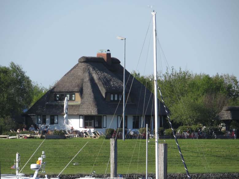 Ansonsten ist im Hintergrund nur noch links die „Kajüte am Hafen“ zu sehen, die wohl auch zur Marina gehört, und rechts die Teestube,
