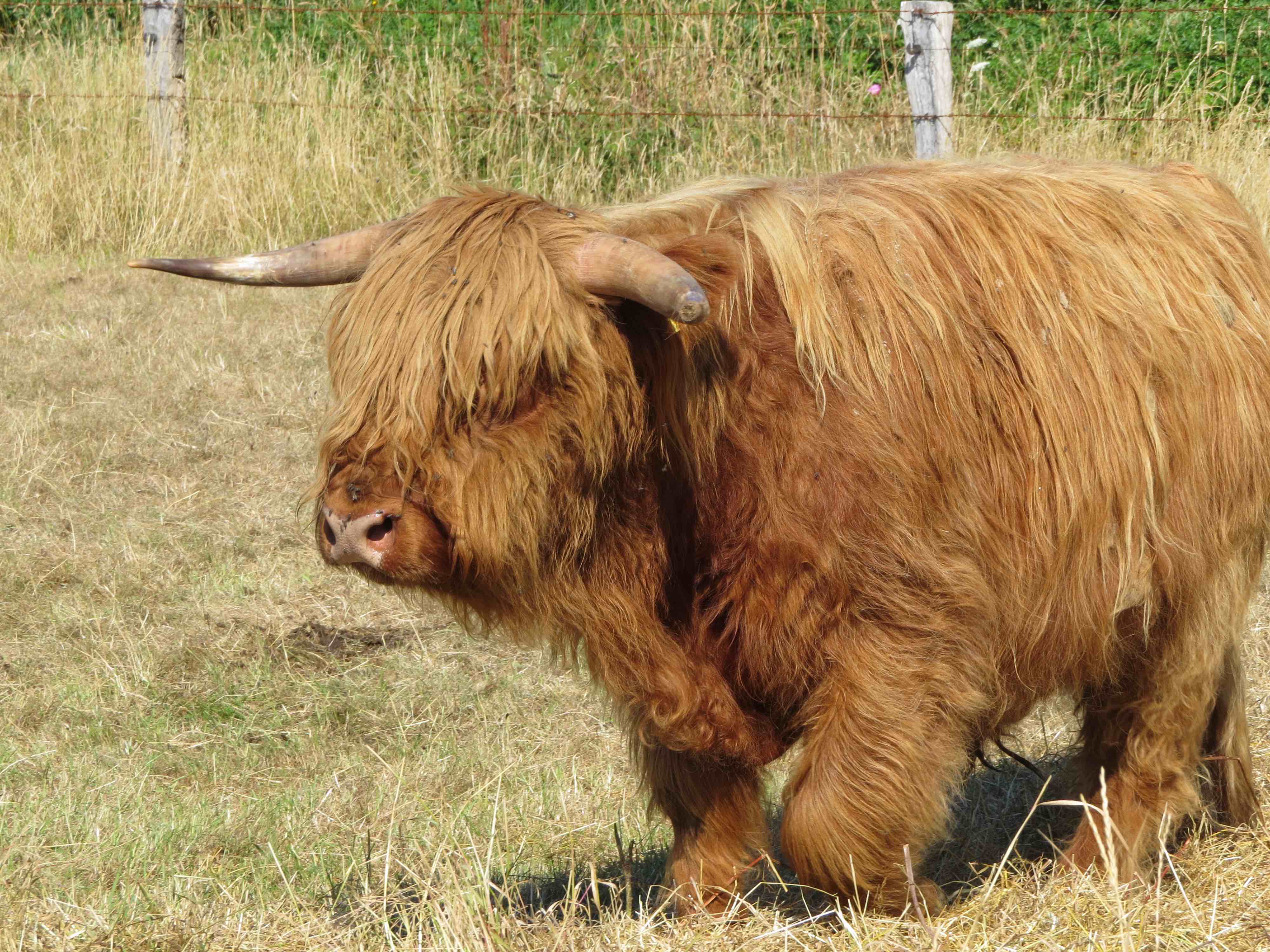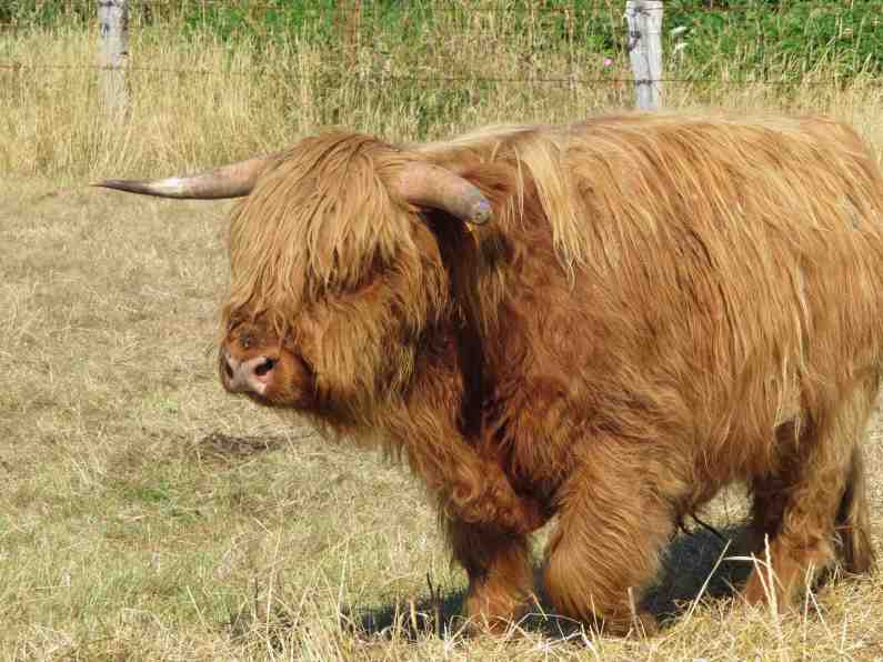 Geht man bis zum Ende, kommt man zu ein paar Feldern, auf denen es jedenfalls 2018 ein paar Galloways gab.
