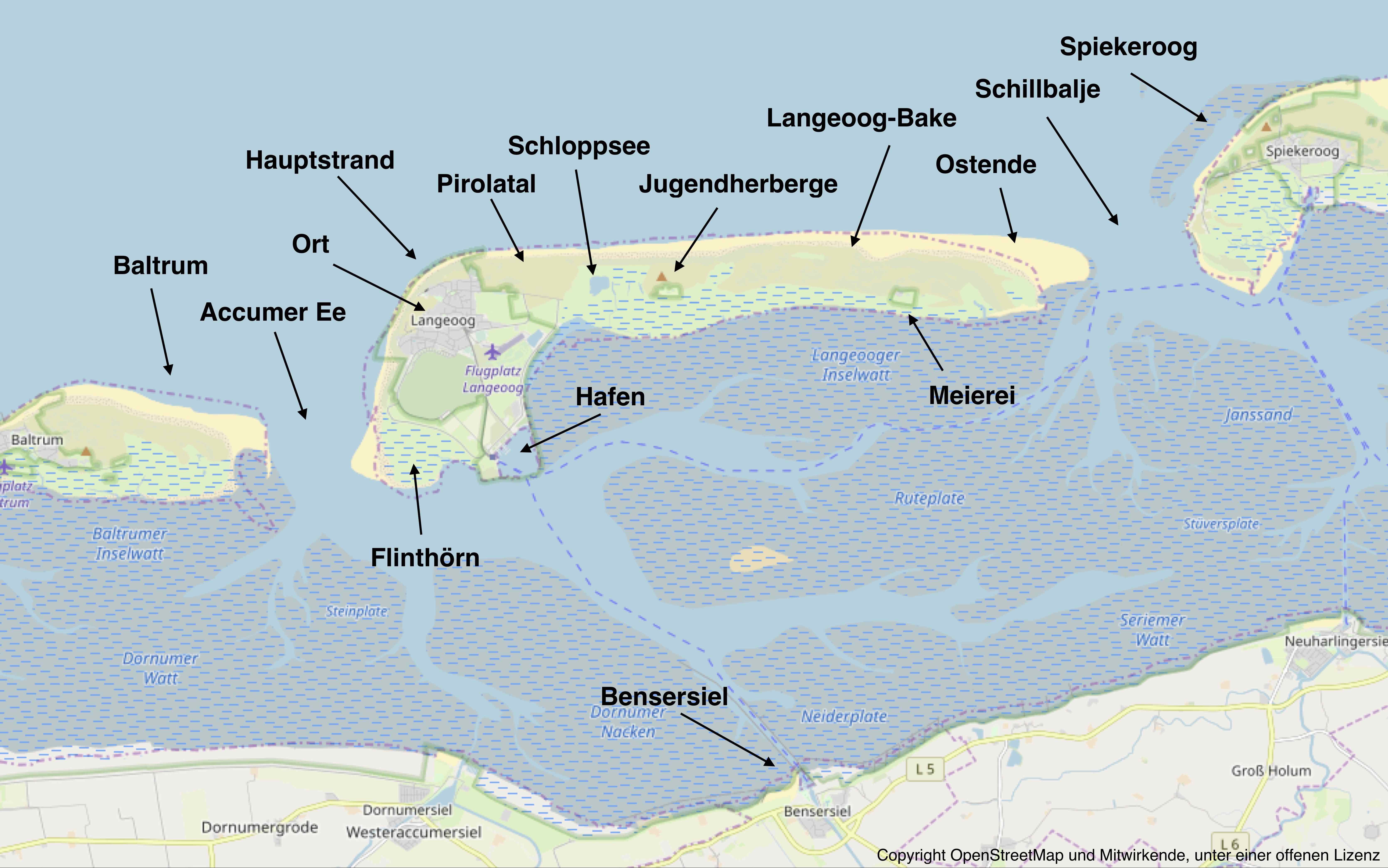 Zur besseren Orientierung gibt es hier eine Gesamtübersicht über die Insel Langeoog …