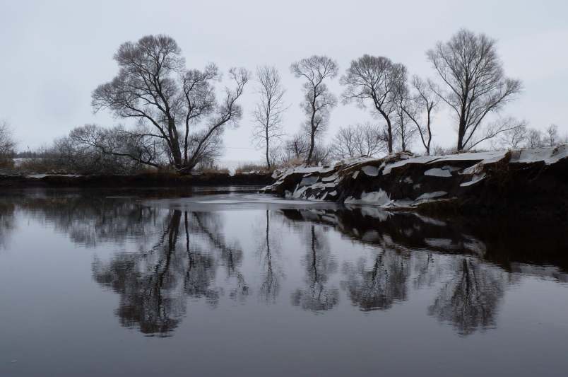 Viele denken, dass Kajakfahren nur für den Sommer geeignet ist, aber Eindrücke wie diese würde man sich dann entgehen lassen. Diese Aufnahme ist vom 3. Januar 2010. Sie zeigt die Wümme etwa 500 Meter flussabwärts von Kuhsiel, übrigens dieselbe Stelle wie im September-Foto 2016 und April-Foto 2018 (s.u.).