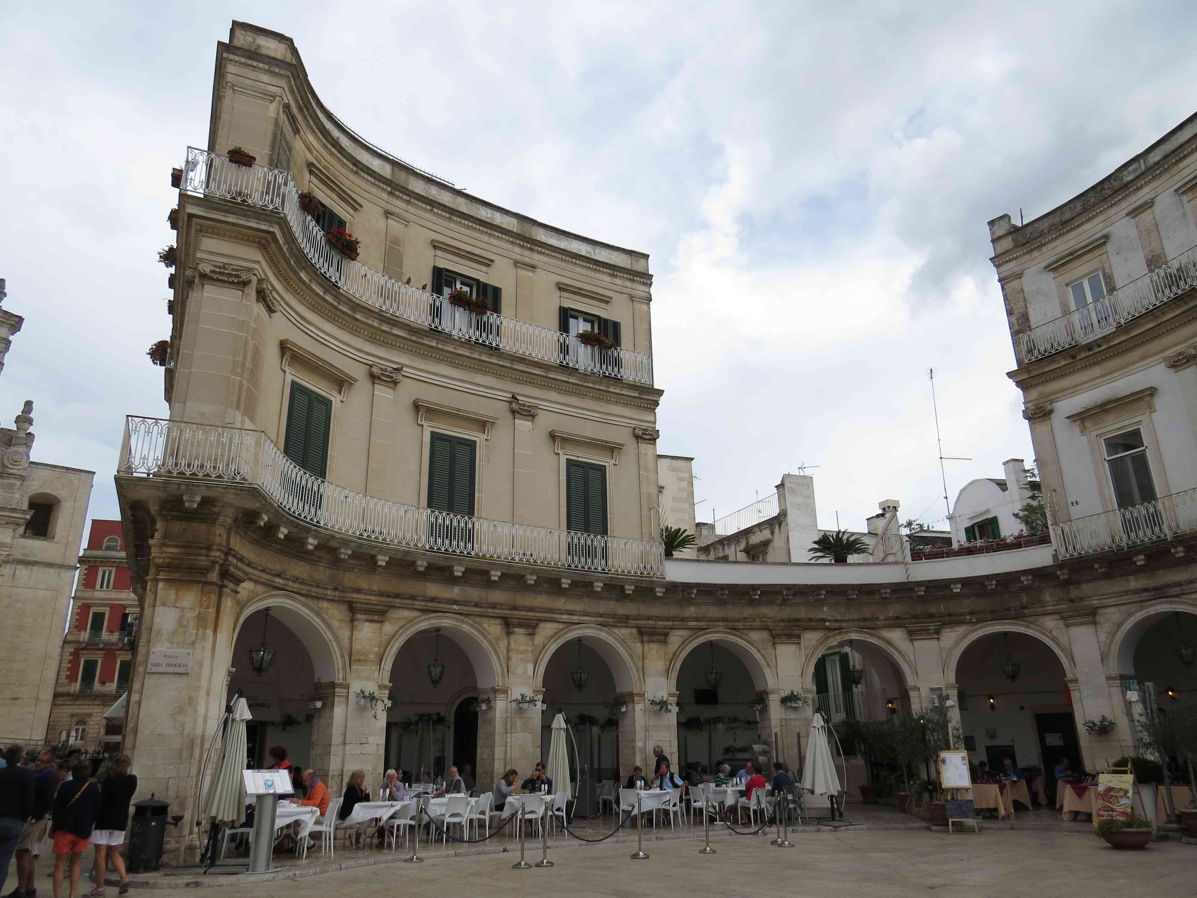 Martina Franca liegt in Sichtweite von Locorotondo, ist aber von weitreichenderer Bedeutung für die Region. Hier ein Platz in der Nähe der Kathedrale, die am linken Bildrand zu sehen ist.