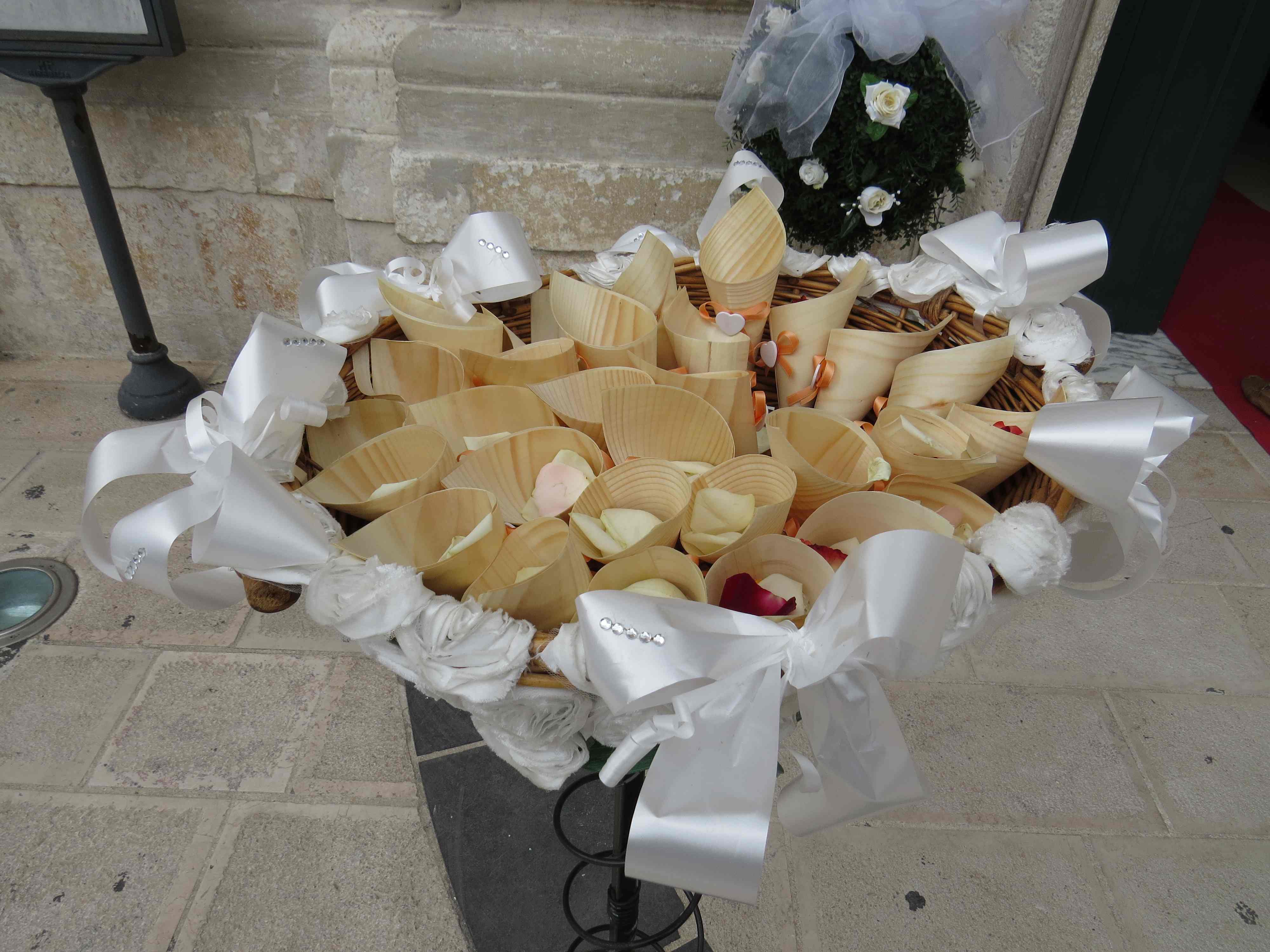 Während unseres Besuchs haben wir zwei Hochzeiten gesehen. Interessant fanden wir diesen Ständer am Ausgang der Kirche mit kleinen mit Rosenblütenblättern gefüllten Gefäßen, wahrscheinlich zum Streuen der Rosenblütenblätter.