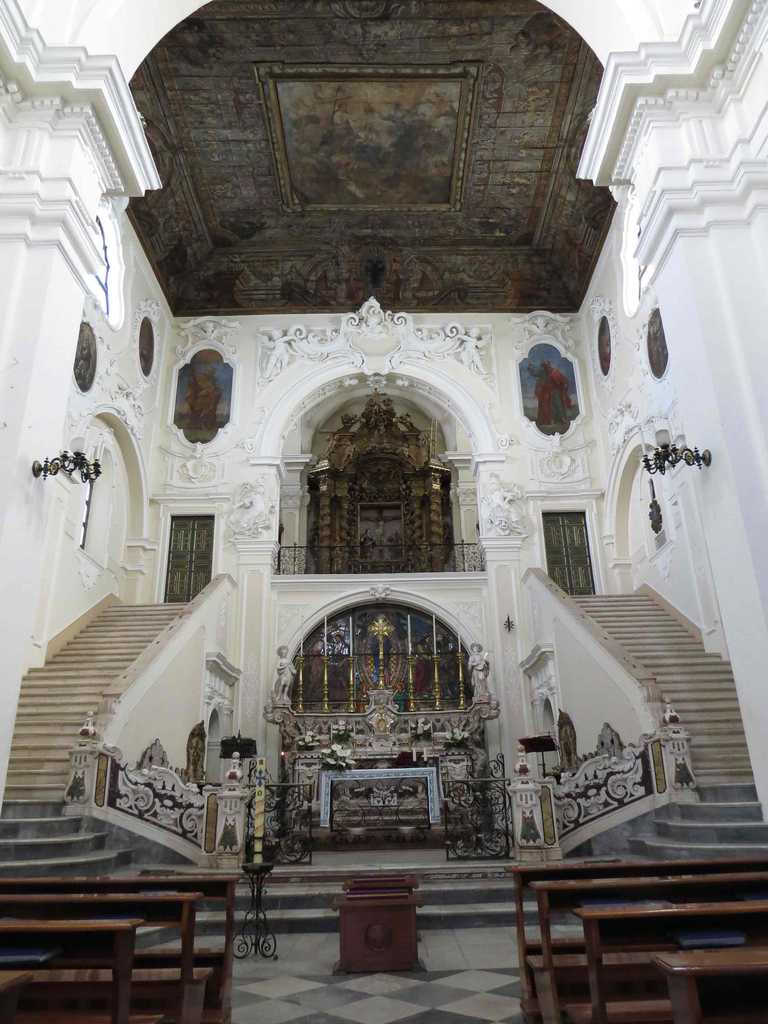 Interessant war die Kirche, St. Pietro, im Zentrum der Altstadt mit einer Besonderheit, nämlich zweier beidseitig des Altars verlaufender Treppen.