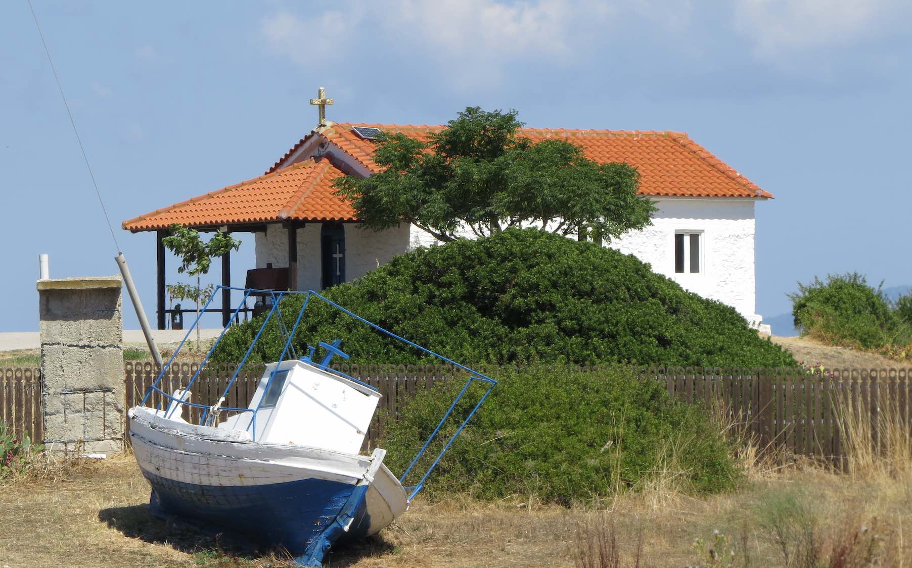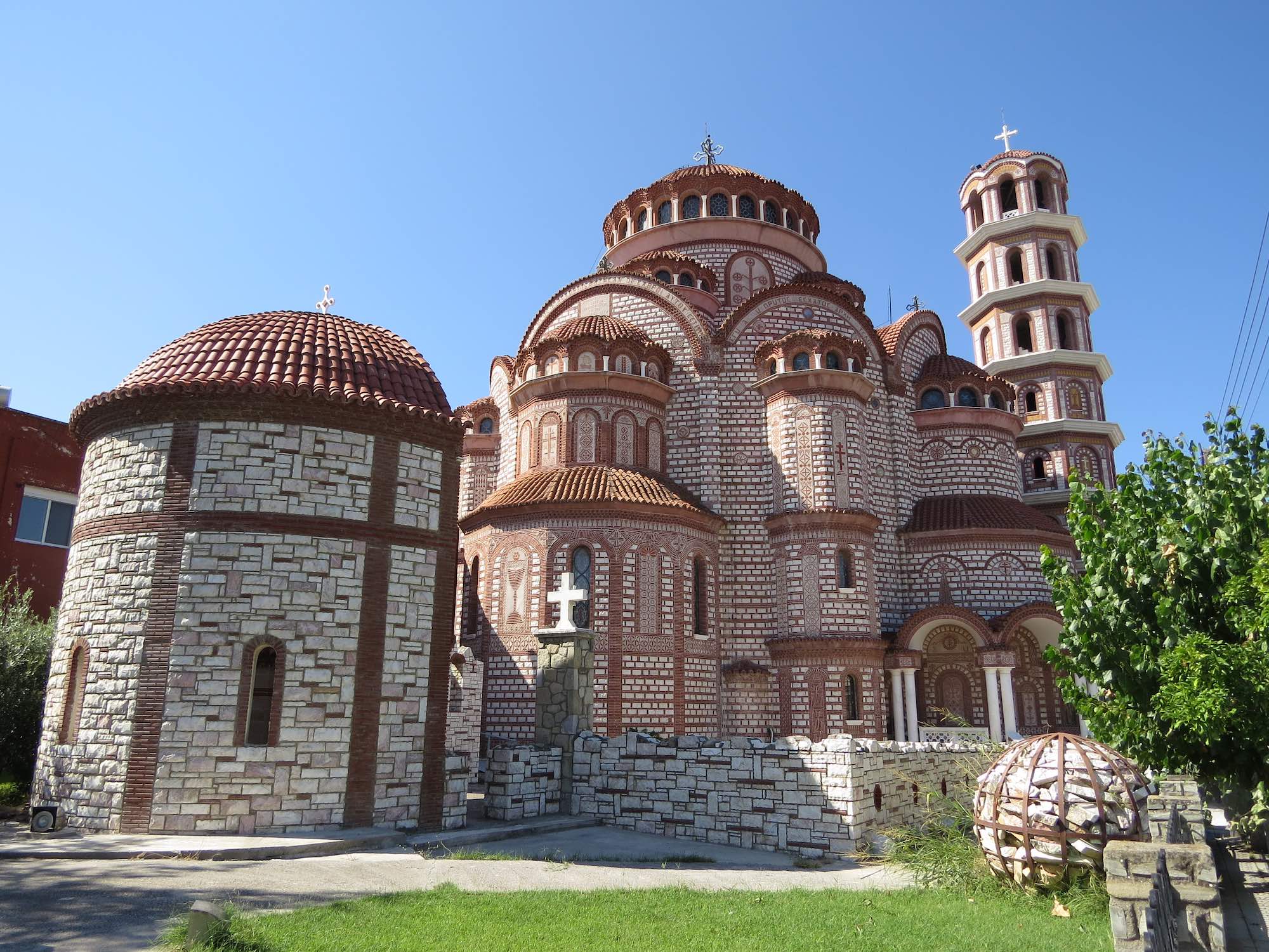 Es sollte zwar ein Strandurlaub sein und daher haben wir am ersten Tag auch einen Strand angesteuert. Zuvor waren wir aber noch in Nea Moudania, eine interessante Kirche ansehen, die uns gestern auf dem Weg zum Hotel aufgefallen war.