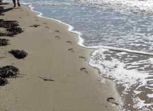Aber auch hier waren Steinplatten im Wasser, direkt im Brandungsbereich kurz unter der Wasseroberfläche. Dahinter war wieder Sand.