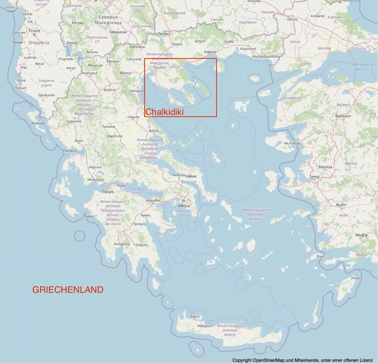 Chalkidiki ist eine Halbinsel im Norden Griechenlands, bei Thessaloniki.