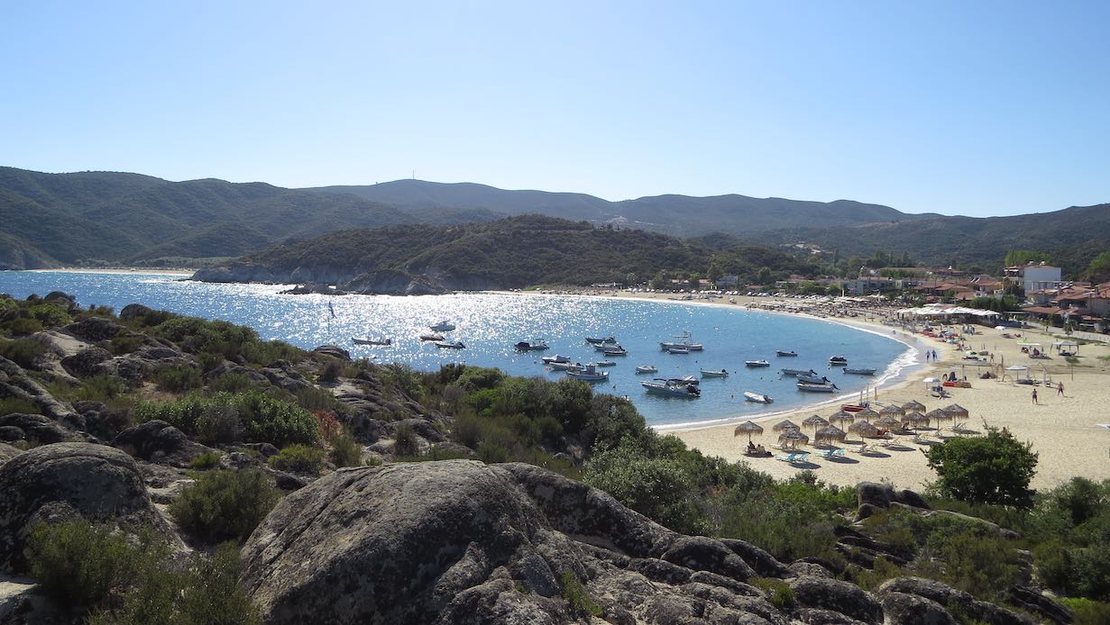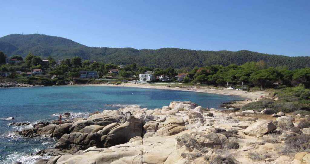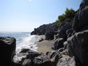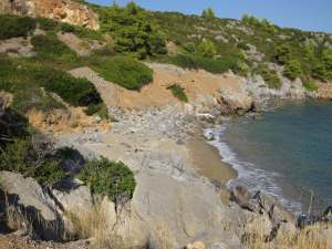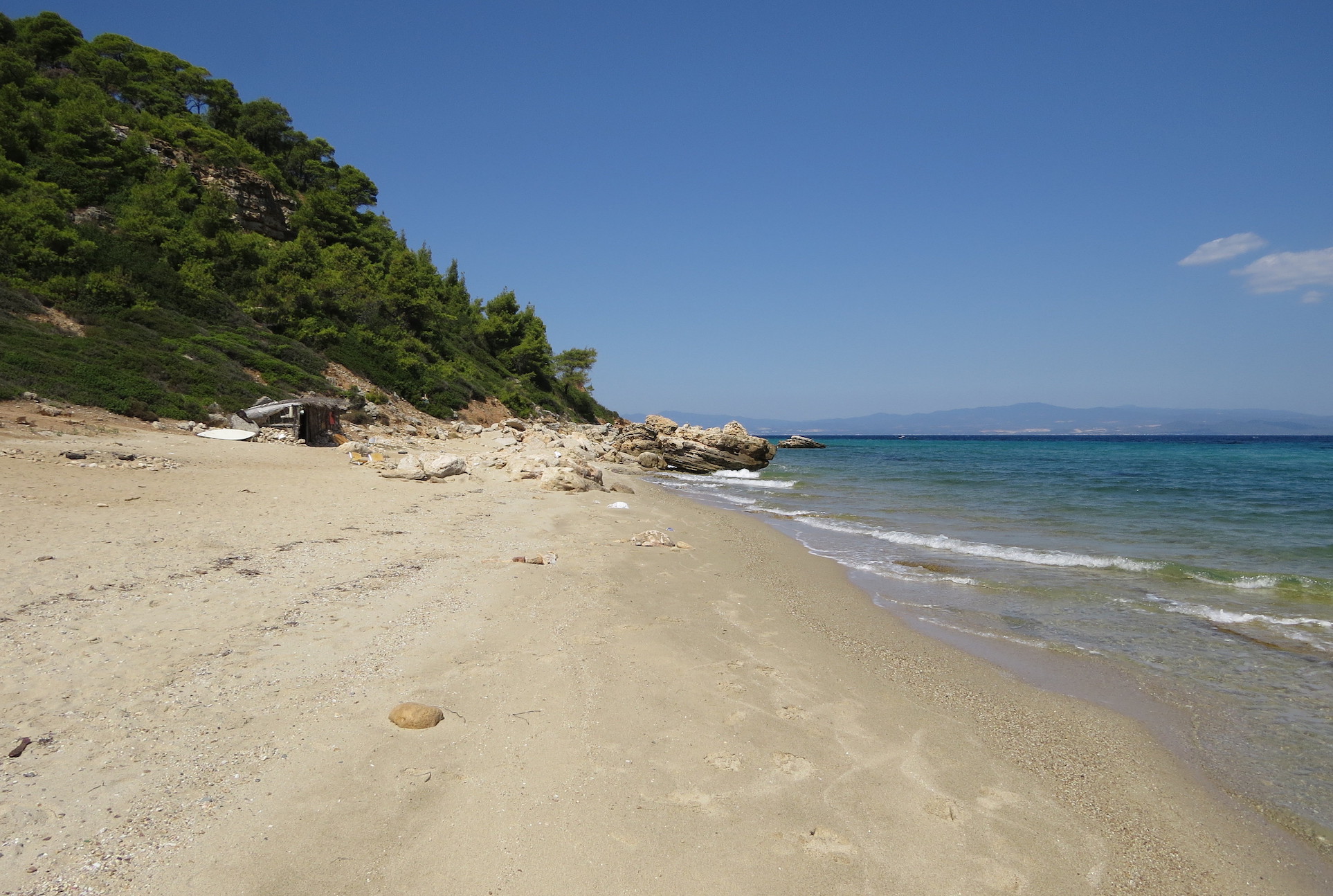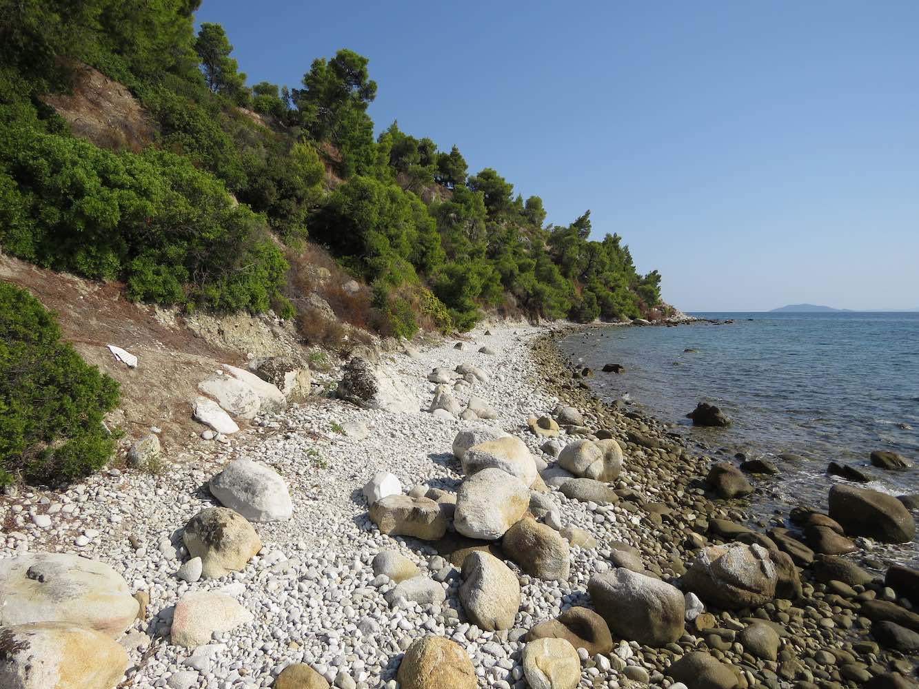 Dabei präsentierte sich die Küste neben dem Strand Kalogria mit einem steinigen Abschnitt, auf den nach ein paar hundert Metern wieder ein schöner Strand folgte.