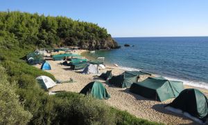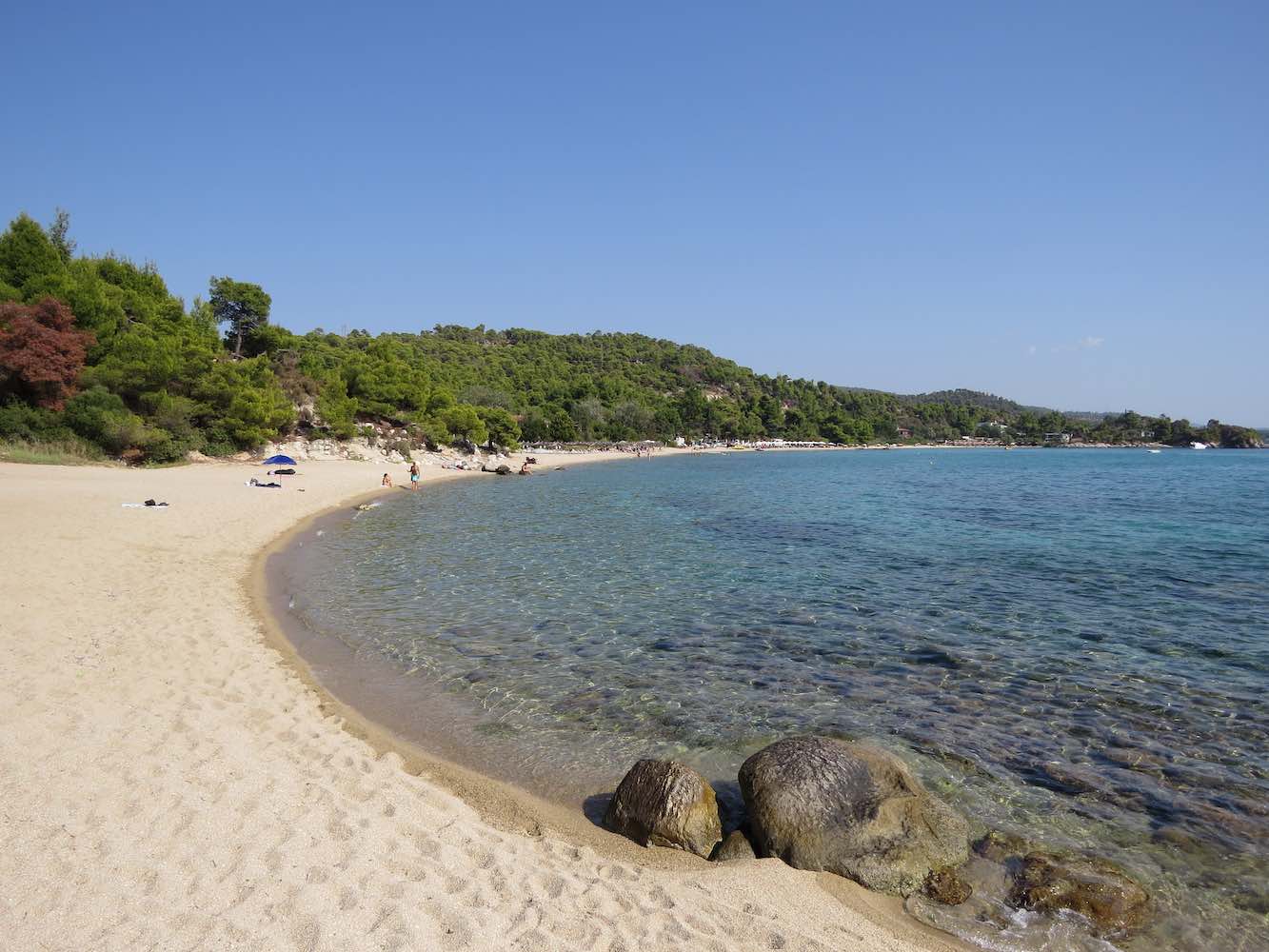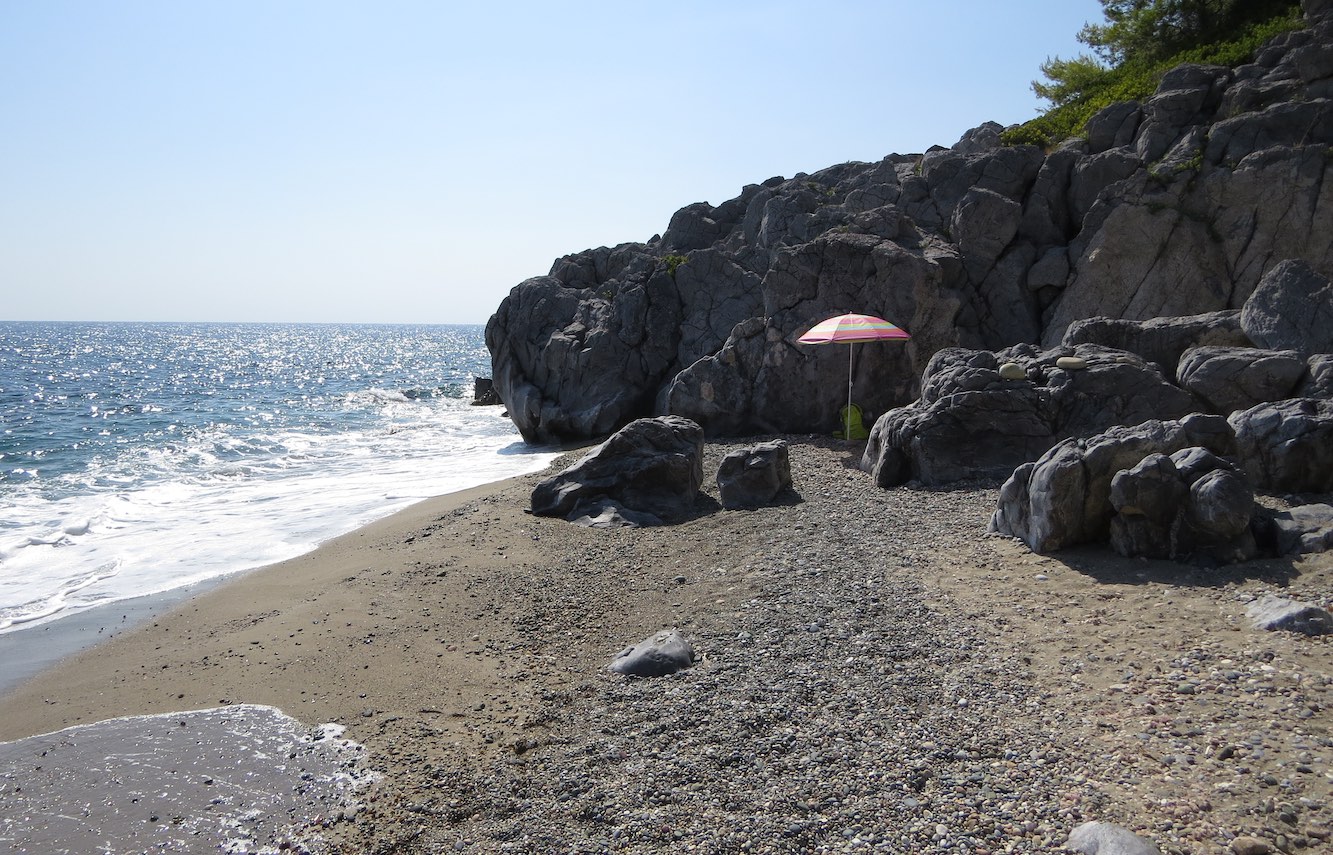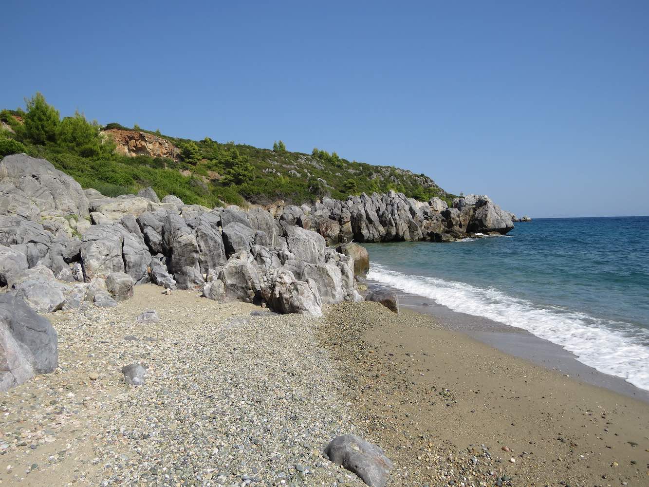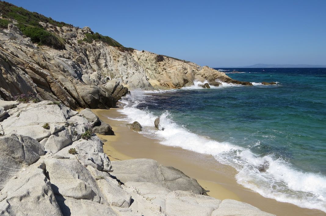 Dabei präsentierte sich die Küste neben dem Strand Kalogria mit einem steinigen Abschnitt, auf den nach ein paar hundert Metern wieder ein schöner Strand folgte.