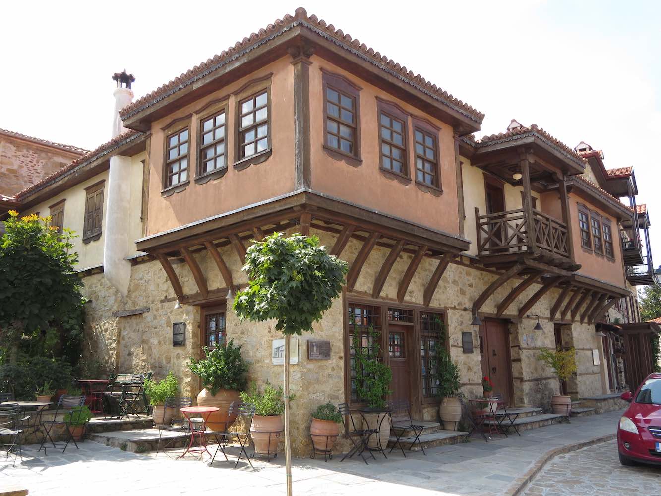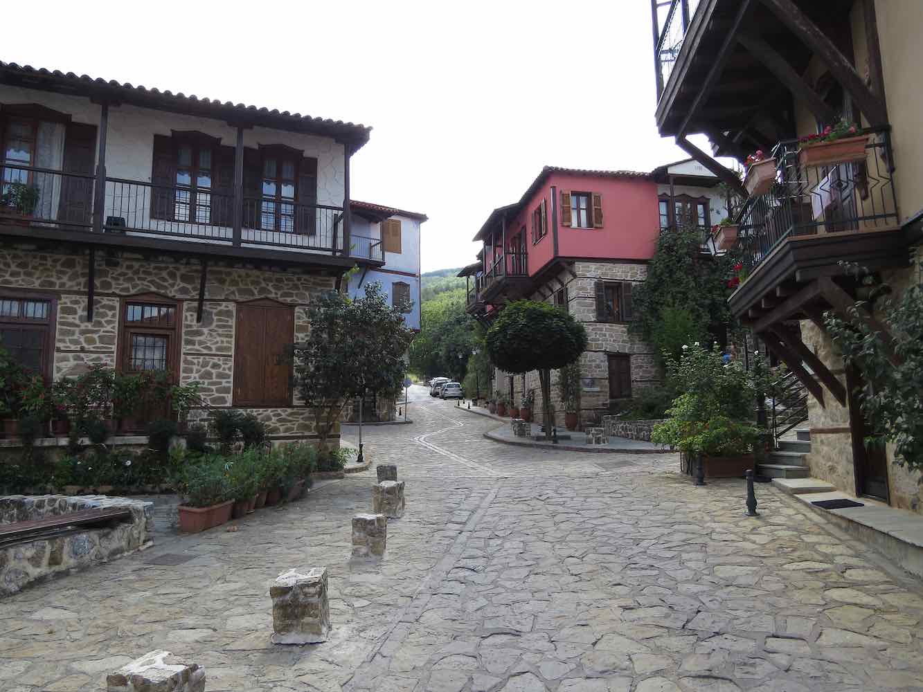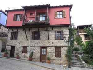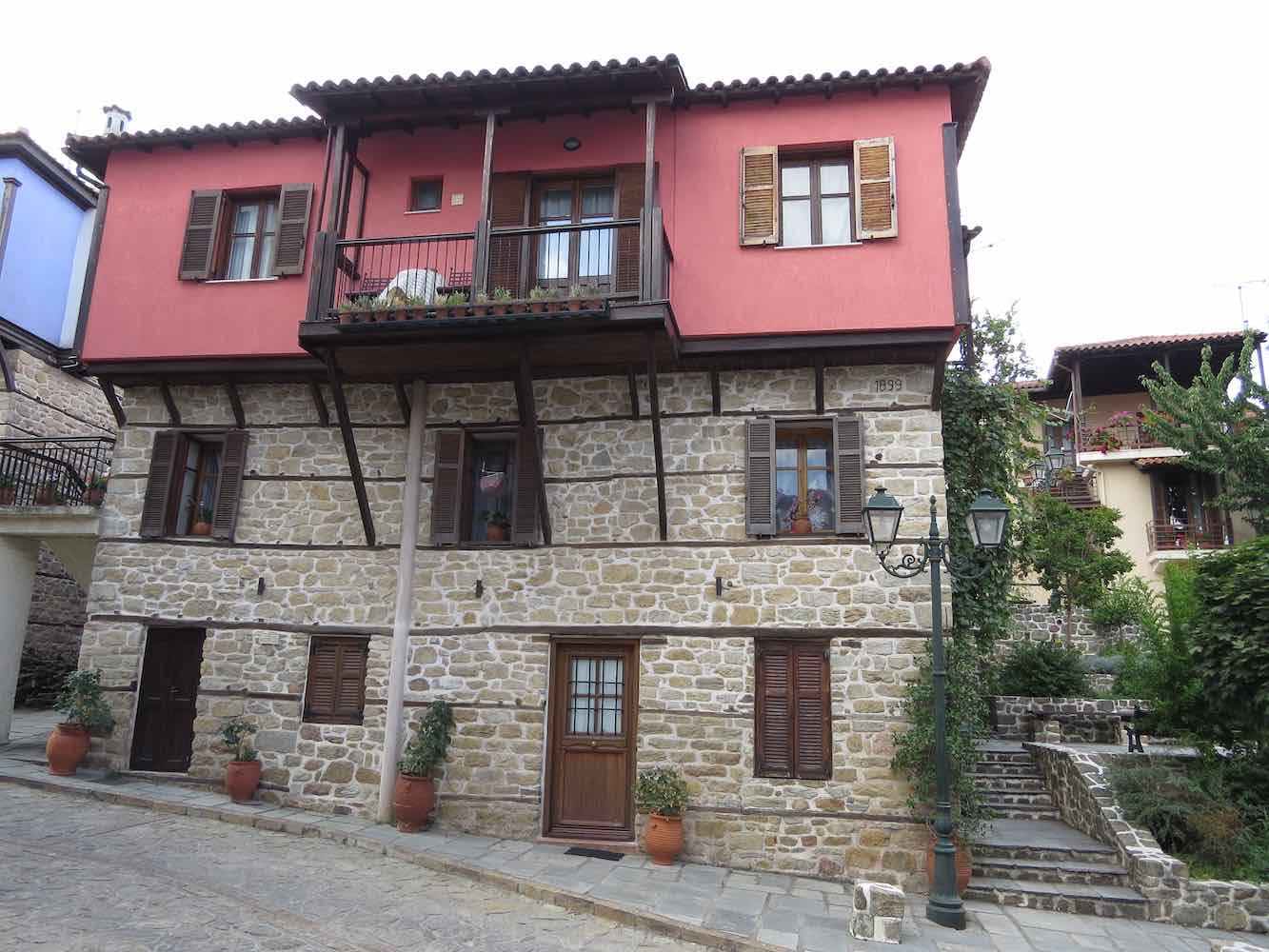 Ein Besonderheit, die wir schon aus Parthenonas kannten, war die Kombination mit Fachwerk mit Naturstein im unteren Bereich und einem farbig angestrichenen Obergeschoss.