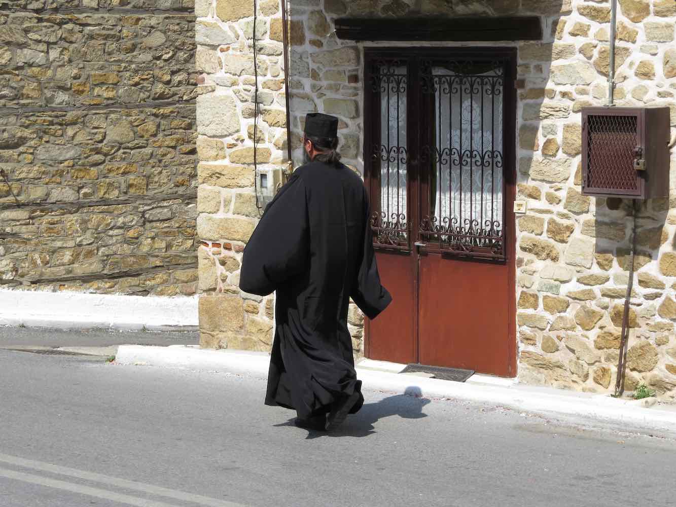 In Arnea sollten uns typisch mazedonische Häuser in Fachwerkbau erwarten. Nach dem Besuch in Polygyros waren unsere Erwartungen nicht sehr hoch. Doch zunächst haben orthodoxe Priester, falls ich die richtig bezeichne, unsere Aufmerksamkeit erweckt.