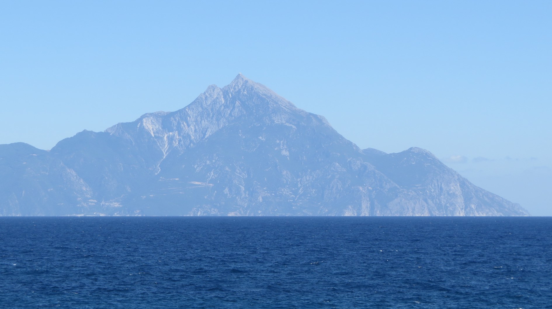 Auf Athos liegt der gleichnamige Klosterstaat. Athos ist noch gebirgiger und hat den Athos-Berg, der über 2000m hoch ist (2033m). Zur Erinnerung: Der Brocken ist 1141m hoch, die Zugspitze 2962m.