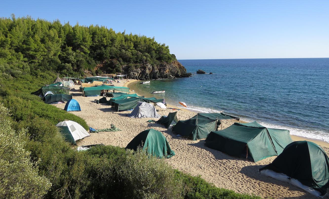 Der erste war sehr geschützt und versteckt gelegen, aber vollgestellt mit Zelten, die dort dauerhafter zu stehen schienen.