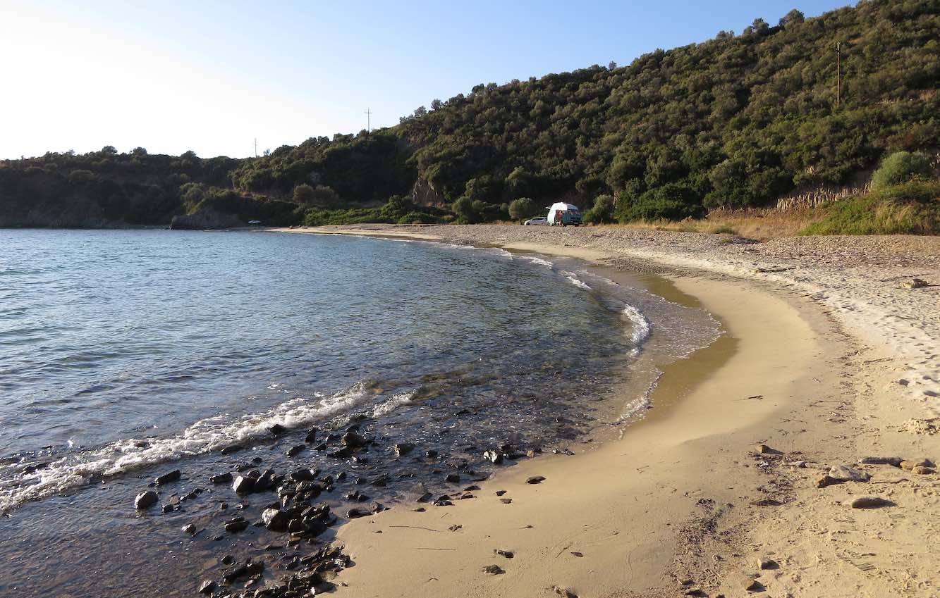 Auf dem zweiten Strand machte mich übrigens ein Grieche, Konstantinos, darauf aufmerksam, dass es besser ist, Sithonia rechtsherum in einem Tagesausflug zu umfahren (also so, wie ich es gemacht habe), denn dadurch ist man abends an der Westseite und kann den Sonnenuntergang genießen. Andernfalls wäre man abends an der Ostseite sehr früh im Schatten der Berge.