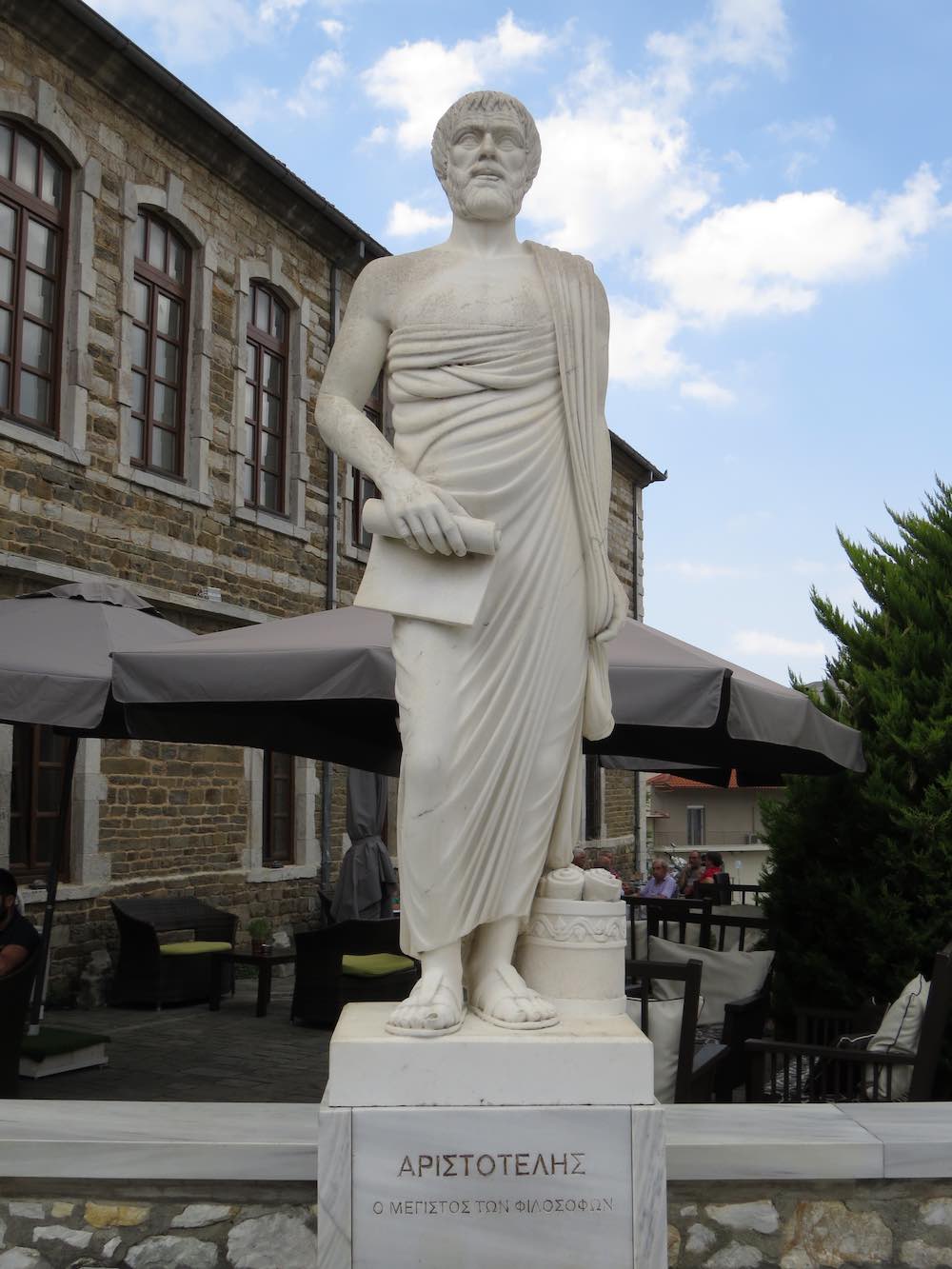 Gleich neben dem Rathaus stand Aristoteles. Bis 2011 war Polygyros Verwaltungssitz der Präfektur Chalkidiki, die den Geburtsort von Aristoteles, Stagira, umfasst, der nämlich an der Ostküste von Chalkidiki liegt, etwa 50km Luftlinie von Polygyros. Vielleicht ist das der Grund für die Statue.