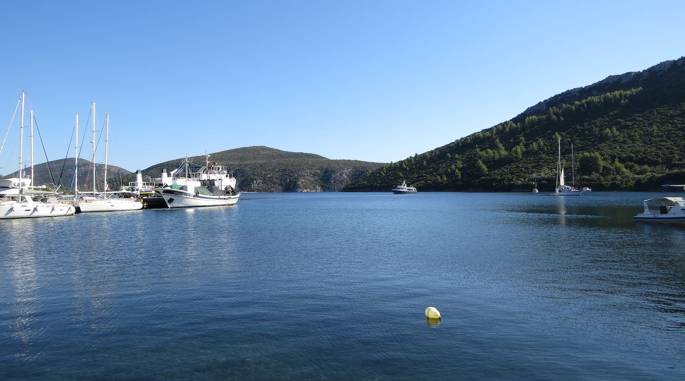 An der Westküste bin ich spontan zum kleinen Hafen von Koufos gefahren, der gut geschützt in einer abgewinkelten Bucht liegt.