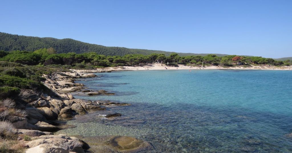 Nach dem gestrigen Besuch auf der Nachbarhalbinsel Sinthios wollten wir heute auf Kassandra bleiben und hier einen netten und neuen Strand aufsuchen. Der Weg führte uns wieder entlang der Nord-/Ostküste Kassandras in Richtung Ostspitze, zum Paliouri-Strand, der wohl auch als Chroussou-Strand bezeichnet wird, wahrscheinlich je nach Abschnitt in der schönen Bucht.
