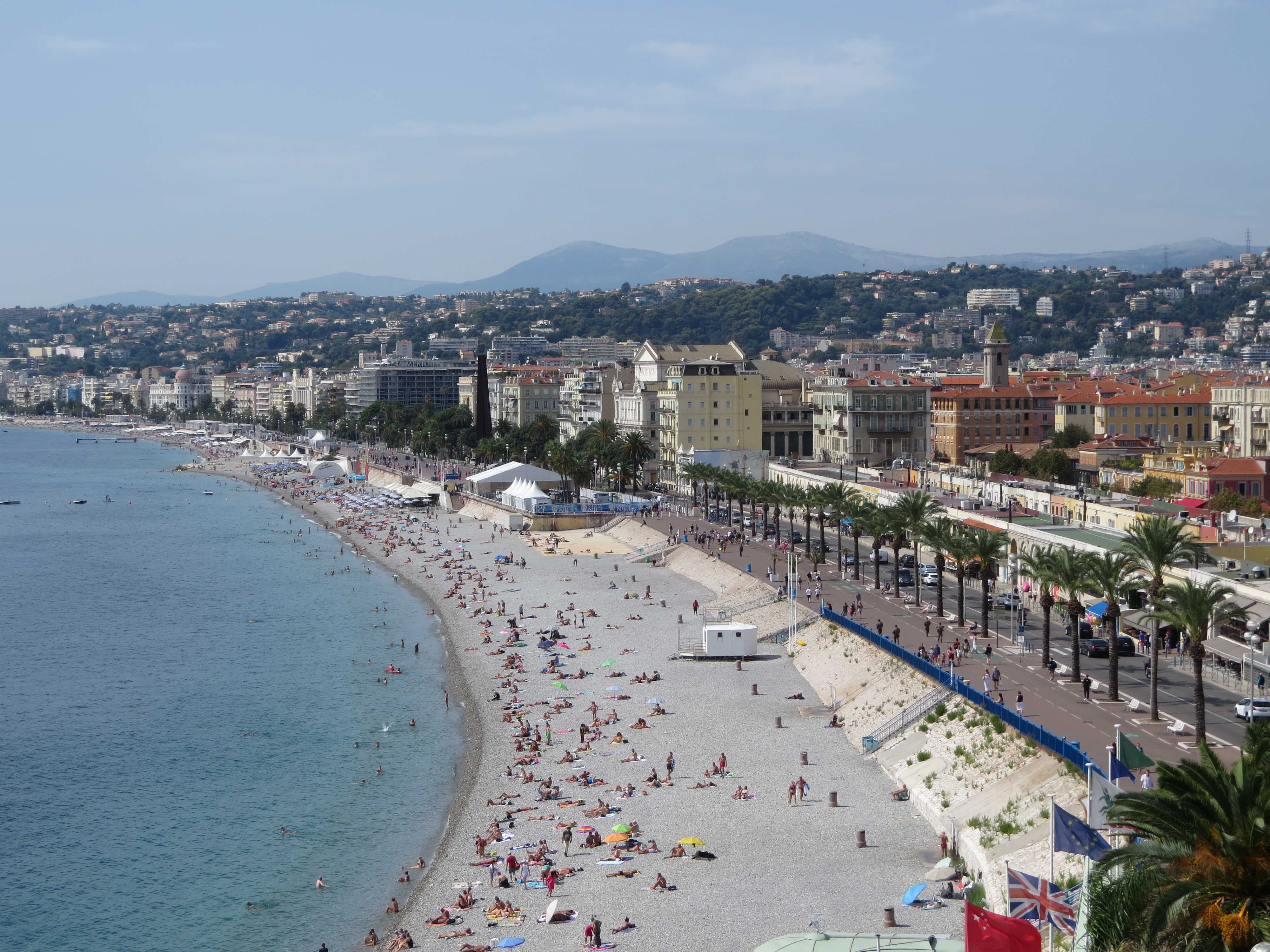 Nizza ist eine quirlige Stadt, mit einer langen Promenade entlang eines kilometerlangen Strandes, gesäumt mit Palmen und einigen hübschen Häusern.