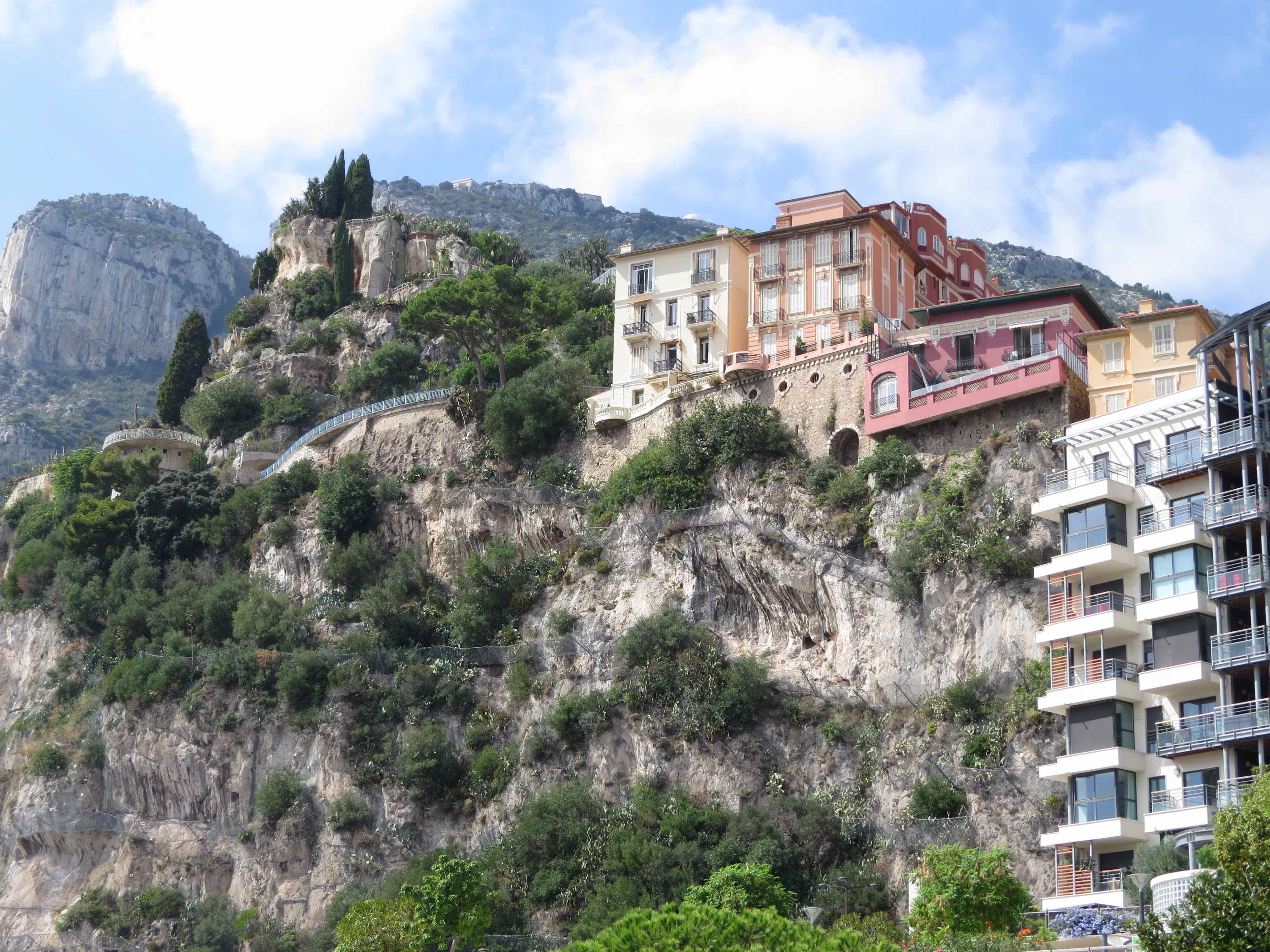 In dem kleinen Fürstentum wird jeder noch so kleine und ungünstige Fleck zum Bebauen genutzt, so dass sich manche Häuser in die Felswand zu klammern scheinen.