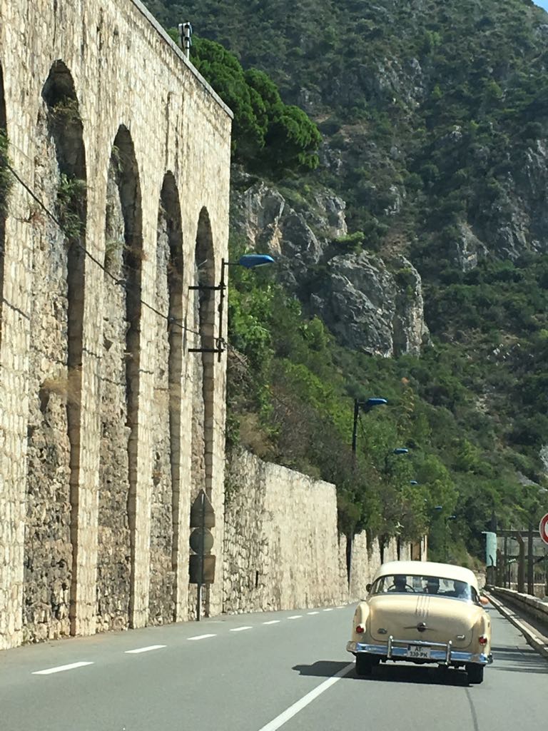 Von Beausoleil ging es dann entlang der Küste zu unserer nächsten Unterkunft in Cagnes zur Mer. Unterwegs fuhren wir eine Zeit lang hinter diesem alten Bentley in passender Umgebung.