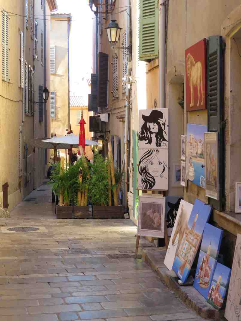 Neben der Flaniermeile am Hafen gibt es aber auch hübsche Gassen in Saint Tropez. In manchen findet man Gallerien, z.T. mit Bildern bekannter Einwohner von Saint Tropez.
