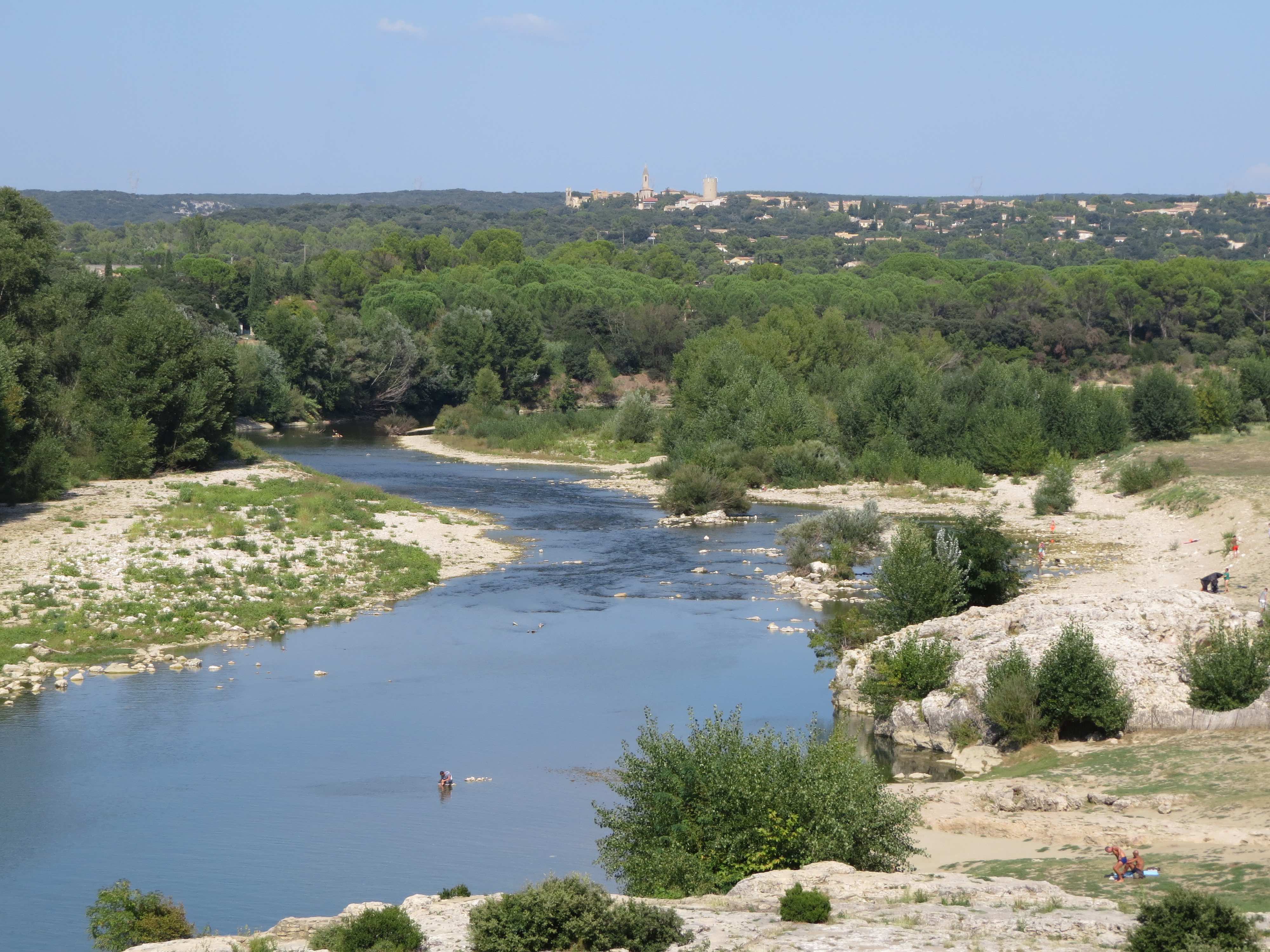 Der Gardon ist auch im Bereich der Pont du Gard in eine reizvolle Landschaft eingebettet und lädt zum Baden und Paddeln ein.