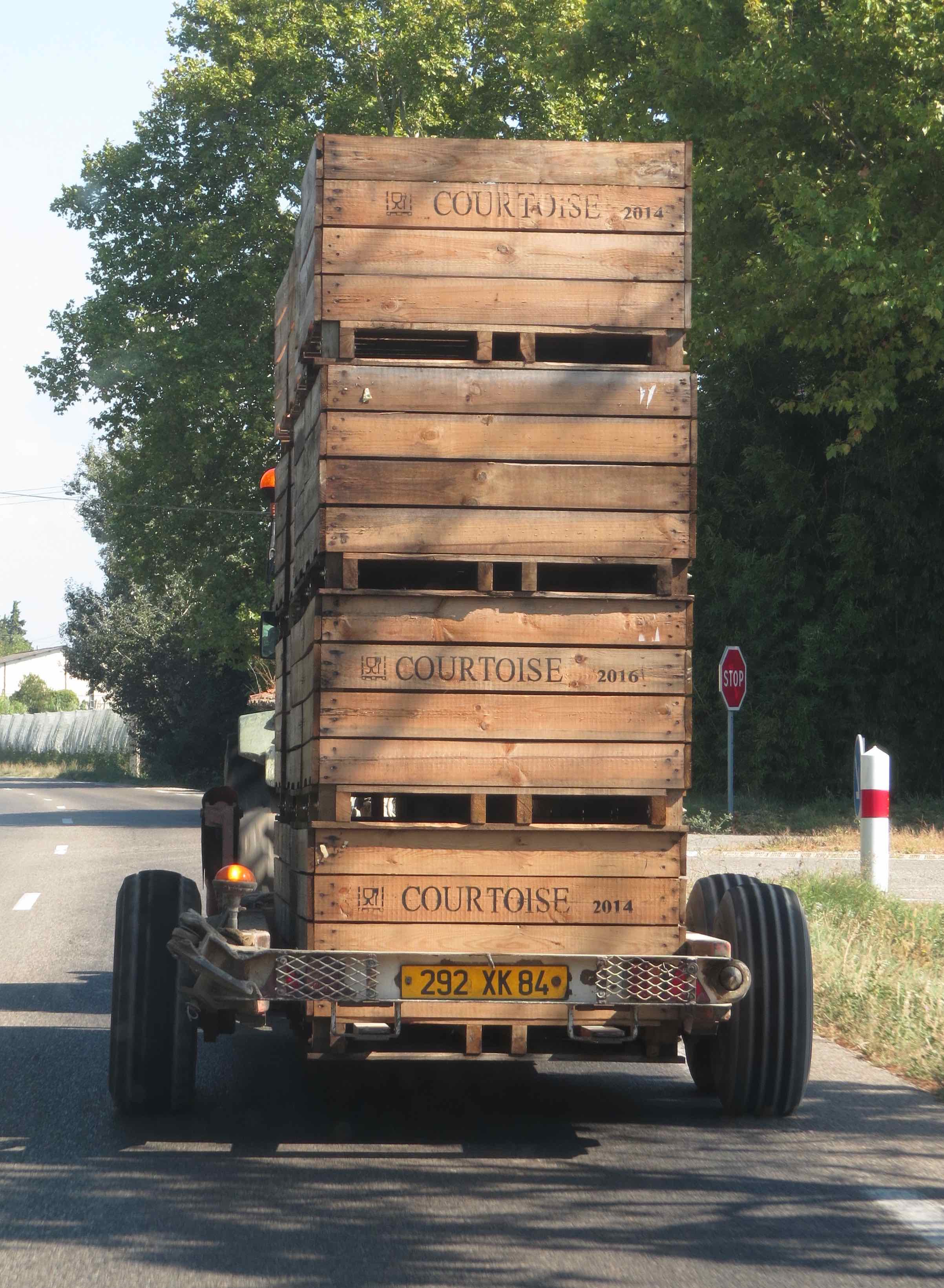 Dann sind wir gegen Mittag Richtung Roussillon aufgebrochen. Die Fahrt verlief die meiste Zeit über Land. Dieser Teil der Provence unterscheidet sich landschaftlich sehr von der Cote d’Azur. Hier gibt es auch viel Obstanbau, mit dem sich wohl auch dieser Transporter beschäftigt.
