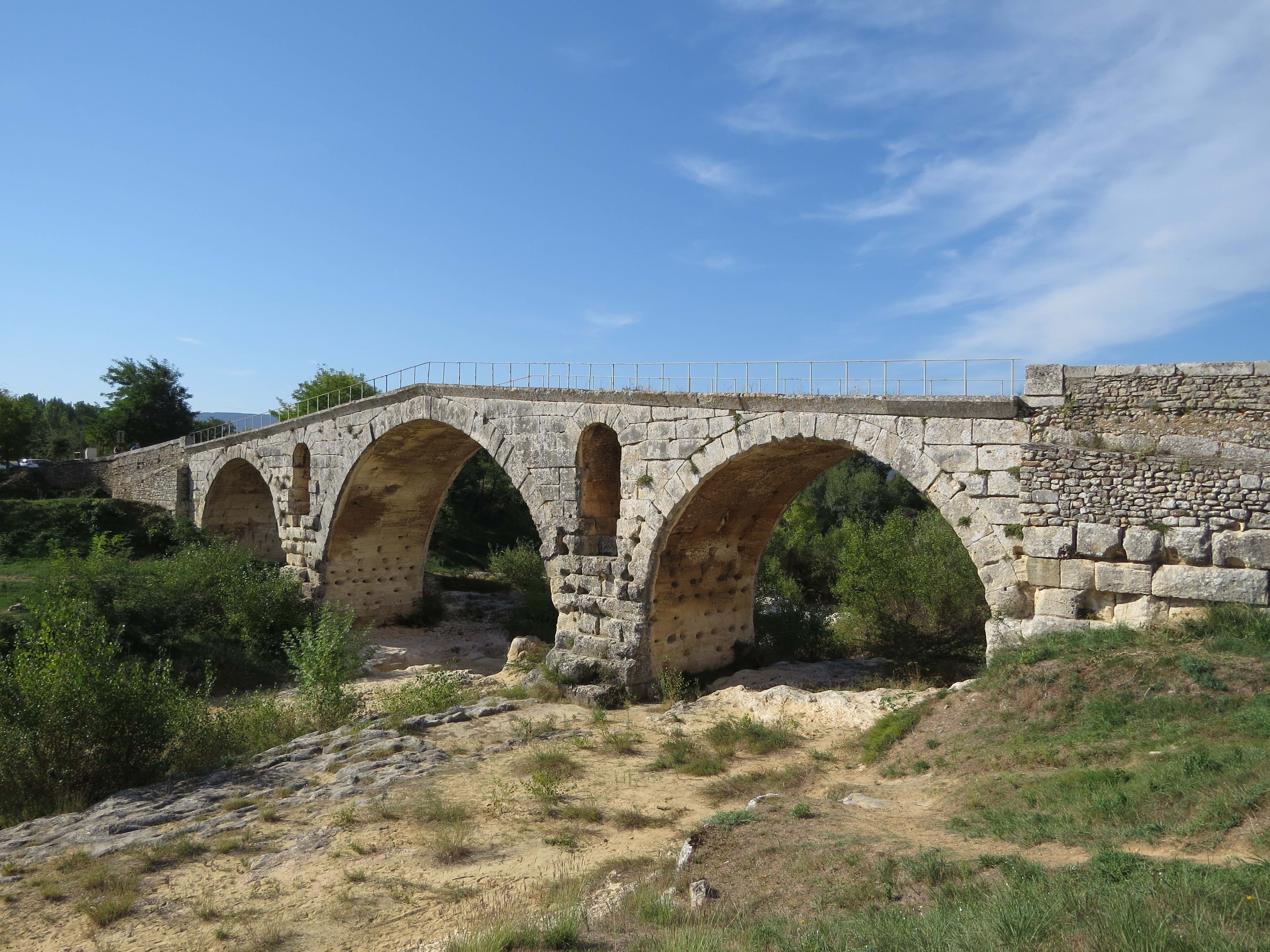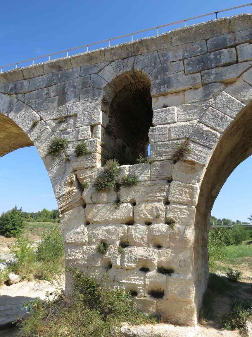 Laut Wikipedia (Wikipedia, Pont Julien) ist die Brücke im Jahre 3 v. Chr. fertiggestellt worden, ist also über 2000 Jahre alt. Bis 2005 soll sie als normale Straßenbrücke genutzt worden sein. Heute wird sie noch als Fußgänger- und Radfahrerbrücke genutzt. Die beiden Brückenpfeiler haben selbst auch eine Öffnung, die dazu dienen soll, dass bei Hochwasser die Brückenpfeiler dem Wasser einen geringeren Widerstand bieten.