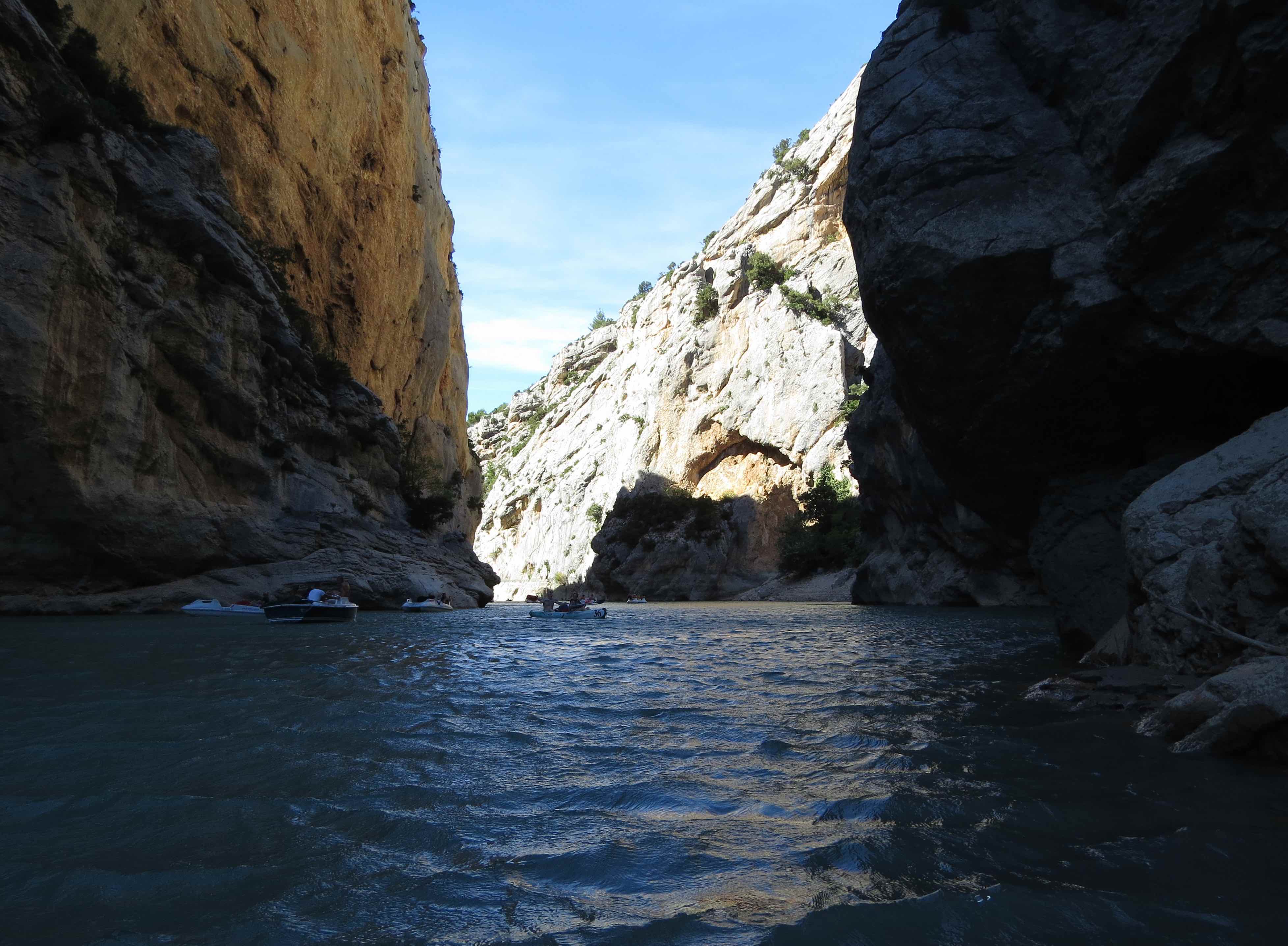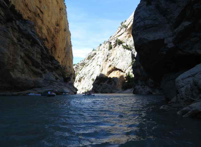 Von der Mündung aus kann man etwa eine knappe halbe Stunde, je nach Boot und Können, in die Schlucht hineinfahren. Das geht im Grund bis zu dem Punkt, bis zu dem sich der Stausee in die Schlucht hinein aufstaut.