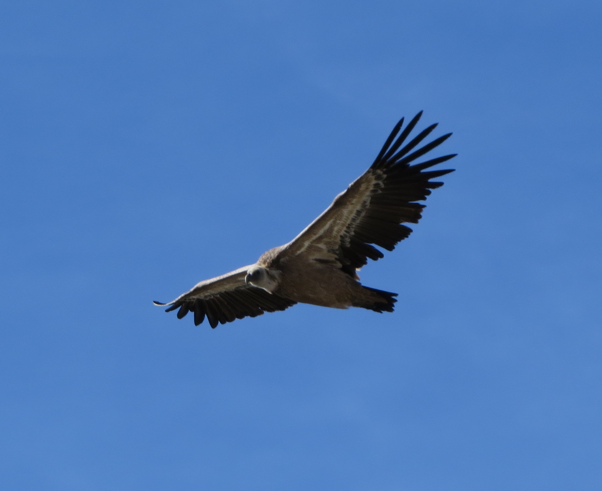 Von dort oben konnte man auch gut die Gänsegeier sehen, die dort die Thermik zum Aufsteigen nutzen.Es ist nicht ganz einfach, sie zu fotografieren, aber es geht.