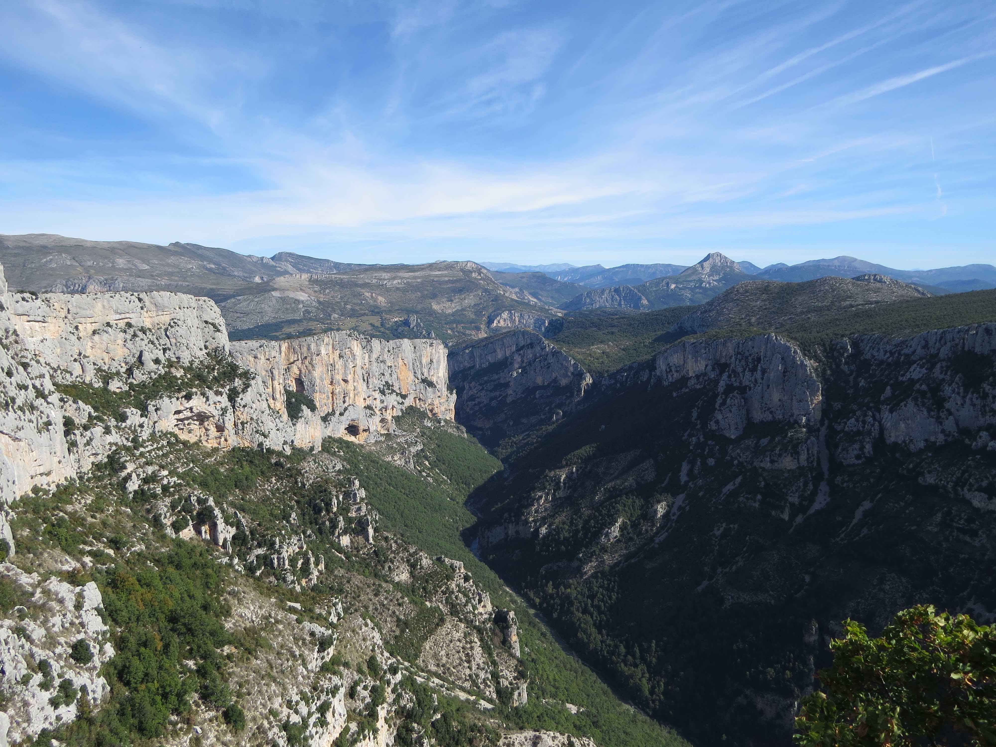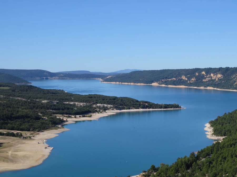 Nach der Spritztour mit dem Kajak in die Verdonschlucht am gestrigen Tag, wollten wir heute in die Schlucht hinunter wandern. Dazu sind wir zunächst mit dem Auto an der rechten Seite der Verdonschlucht entlanggefahren und haben natürlich einige Ausblicke genossen, zunächst aber auf den Stausee Lac de Sainte Croix.