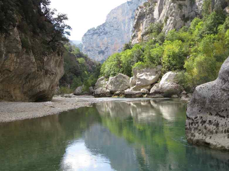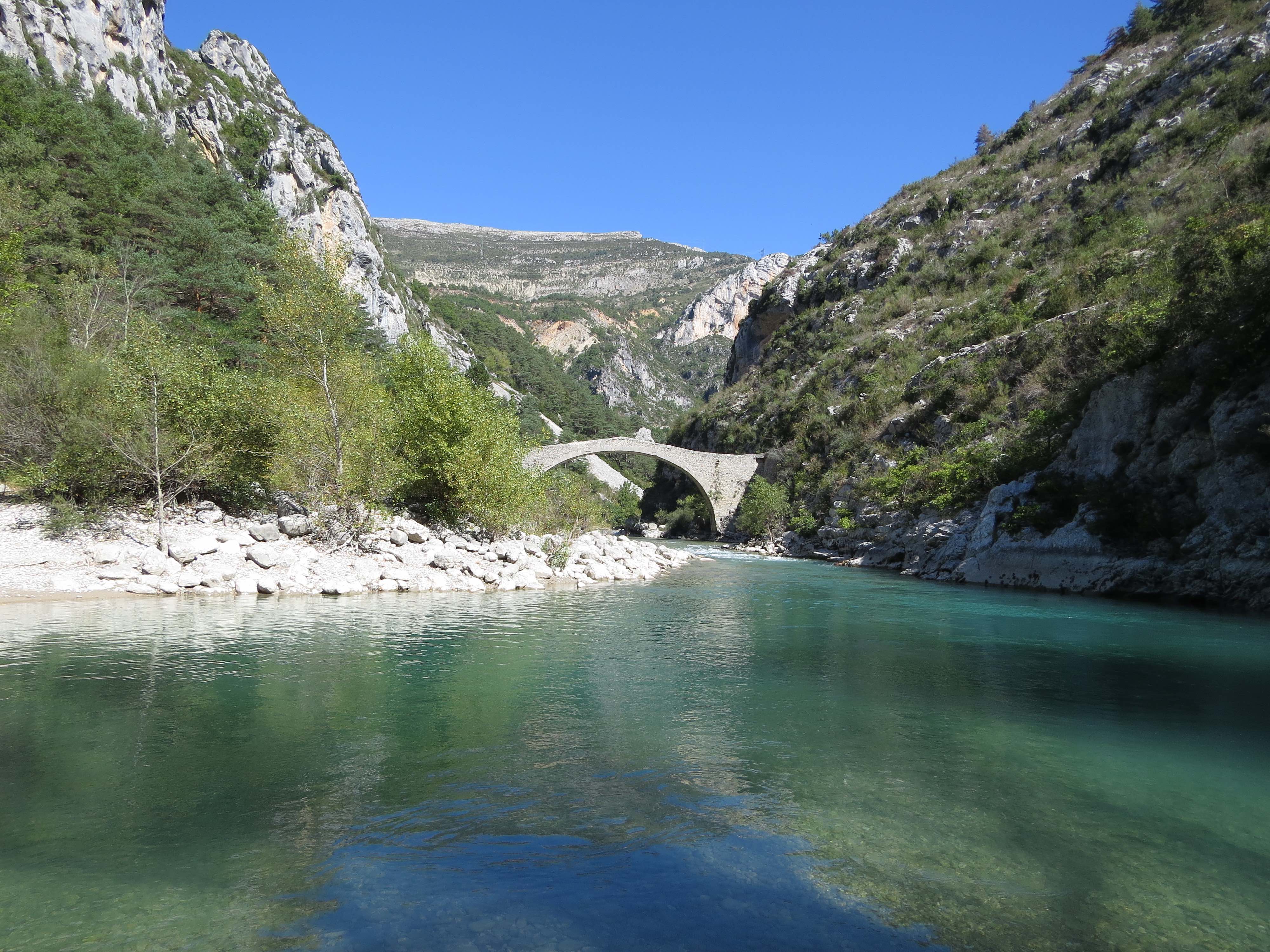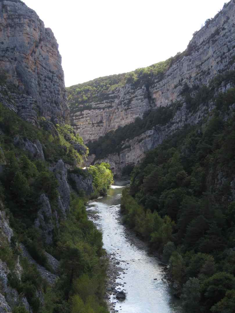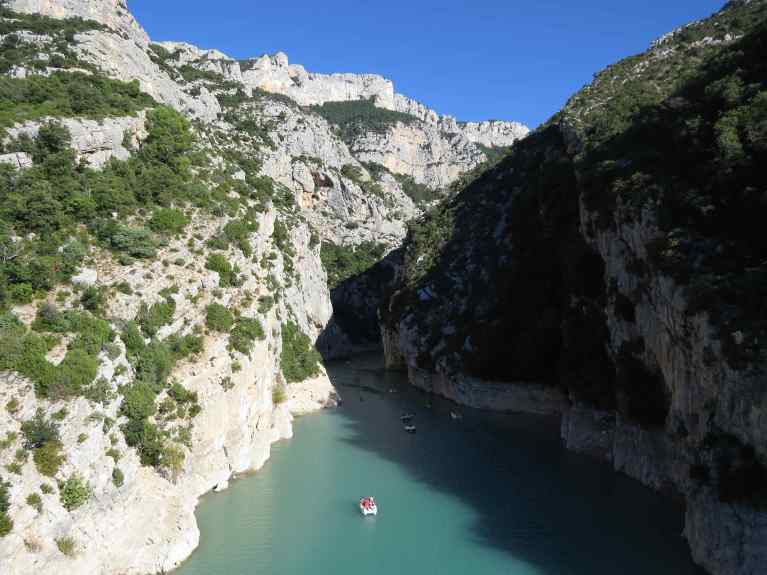 Die Verdonschlucht war dann nur wenige Minuten von unserem Hotel entfernt. An der Mündung des Verdon in den Stausee Lac de Sainte Croix gibt es eine Brücke, von der sich ein beeindruckender Blick in die Schlucht bietet.
