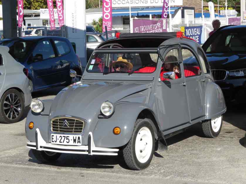 Auf dem Weg zum Flughafen habe ich mir dann an der Tankstelle von einem jungen Herren bestätigen lassen, dass das Auto nicht nur Diesel sondern auch Gasoil tanken kann. Das scheint in Frankreich als eine Art Diesel an den Tankstellen angeboten zu werden. Es stand schon immer so am Tankdeckel, aber mir sagte das nichts und ich wollte mich einfach nochmals vergewissern. Dann habe ich den netten Herren auch gefragt, ob ich sein Auto fotografieren darf, das sah nämlich mit seinem Vater mit Strohhut irgendwie interessant aus.