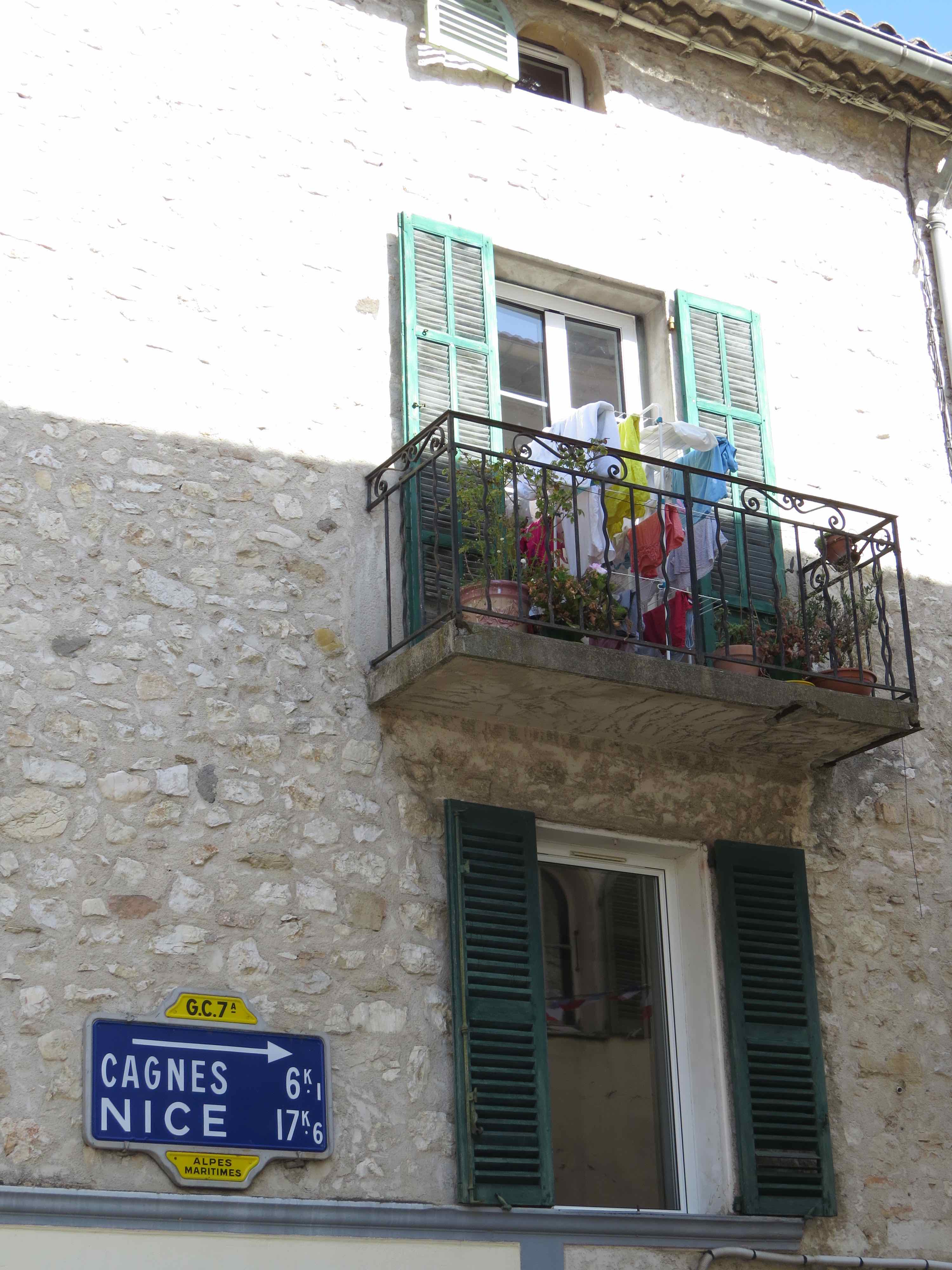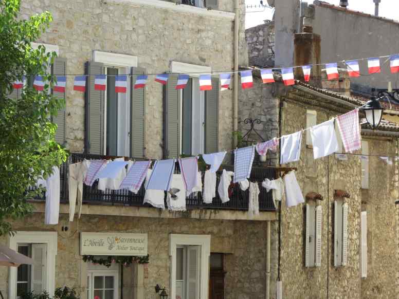 Ansonsten scheint es in Saint-Paul-de-Venece eine besondere Tradition oder ein besonderes Fest zu geben, bei dem man neben kleinen Flaggen auch Wäsche aufhängt. Sowohl die Art der Aufhängung als auch die Kleidung selbst deuten jedenfalls darauf hin, dass es keine zum Trocknen aufgehängte Wäsche ist.