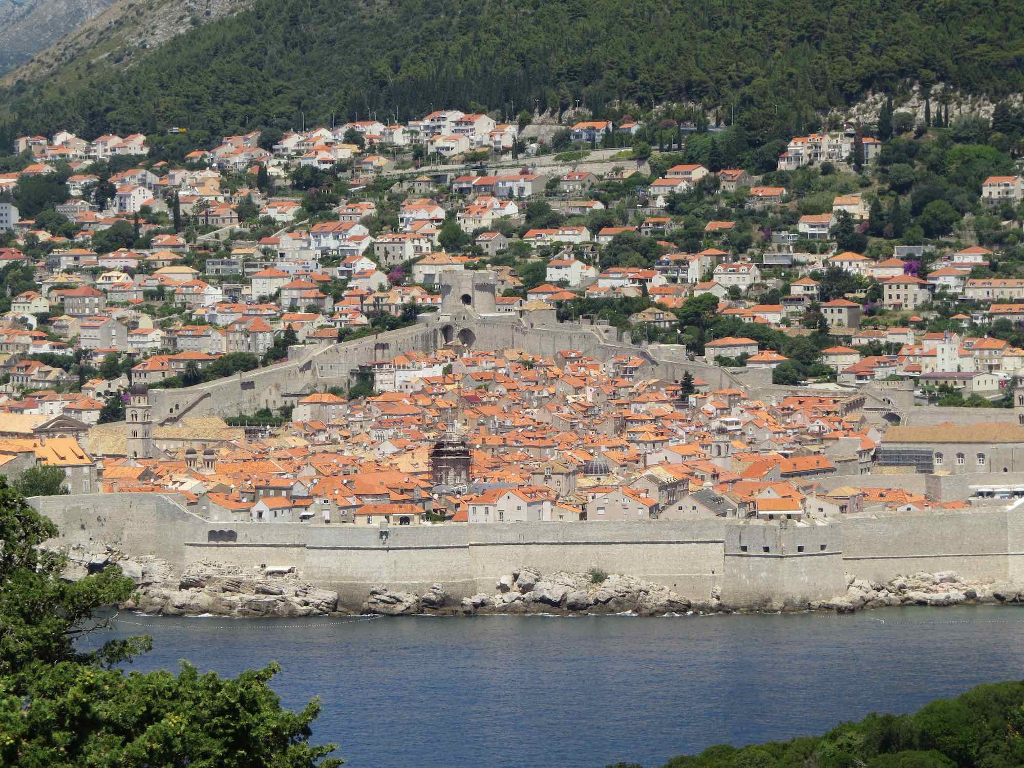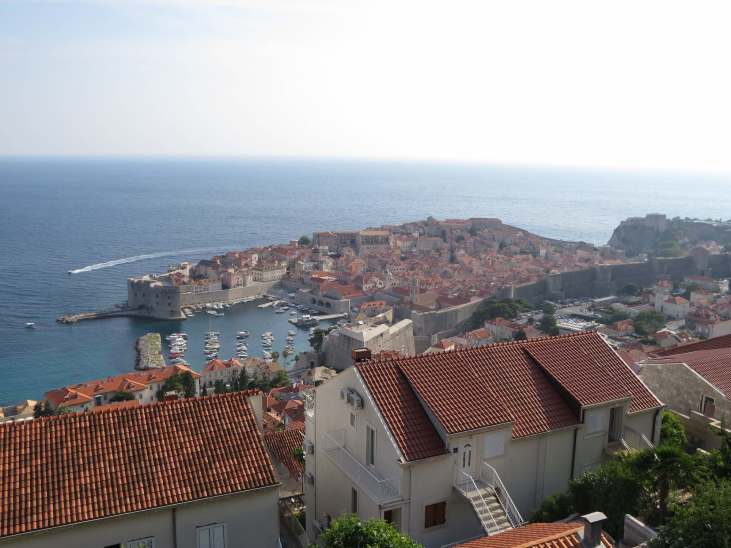 Von der Altstadt fährt eine (überteuerte) Seilbahn den Hang hinauf und von dort hat man einen guten Ausblick auf Dubrovnik und auf die Adria. Man kann zu derselben Stelle aber auch zu Fuß gehen, oder das Auto nehmen, was ich gemacht habe.