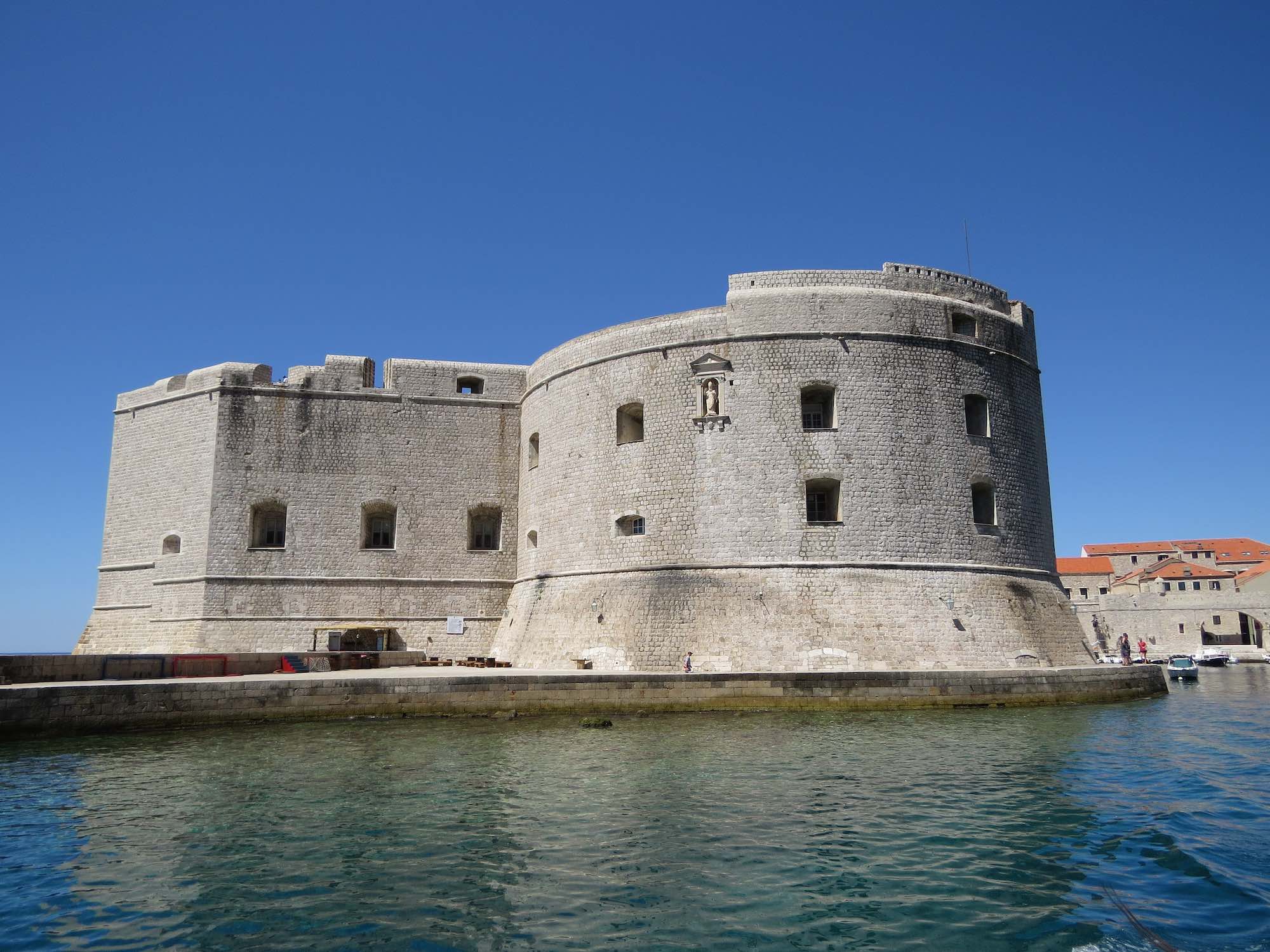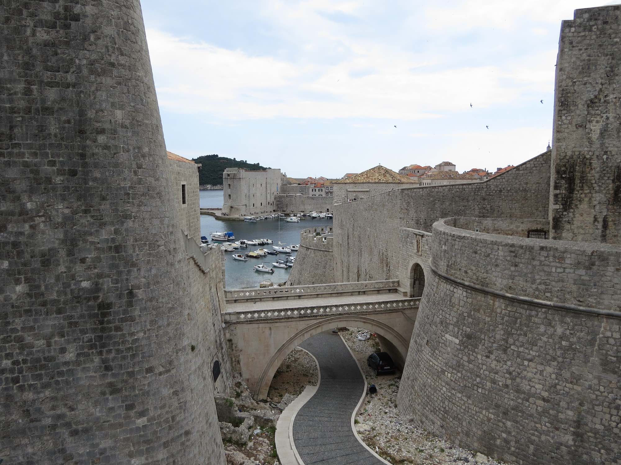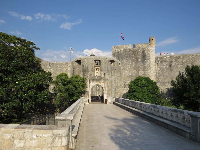 Beim Ploce-Tor gibt es das Fort Revelin, das außerhalb der Stadtmauer ist und über eine Brücke mit der Stadtmauer verbunden ist. Im nachfolgenden Bild gehört die Mauer links im Bild zum Fort Revelin.