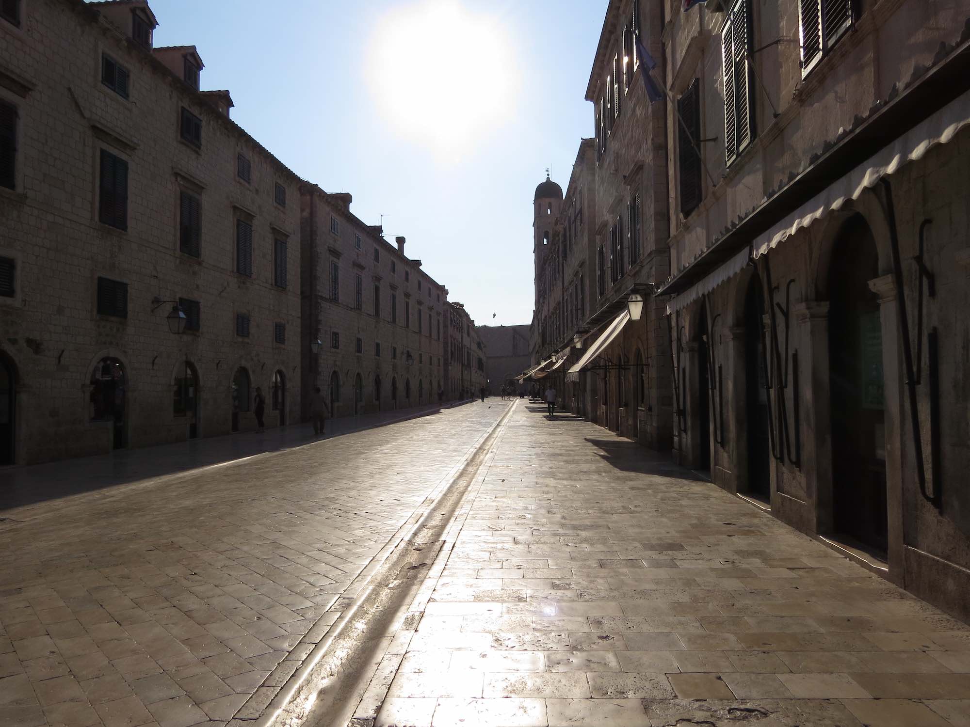 Man gelangt von dort auf die Placa-Stradun, quasi die Hauptstraße, die einmal quer durch die Stadt bis zur Mauer beim Hafen reicht.